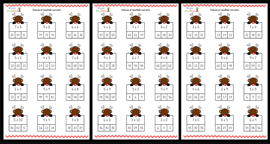 - Último repaso de las tablas de multiplicar con ayuda de los renos de Papá Noel