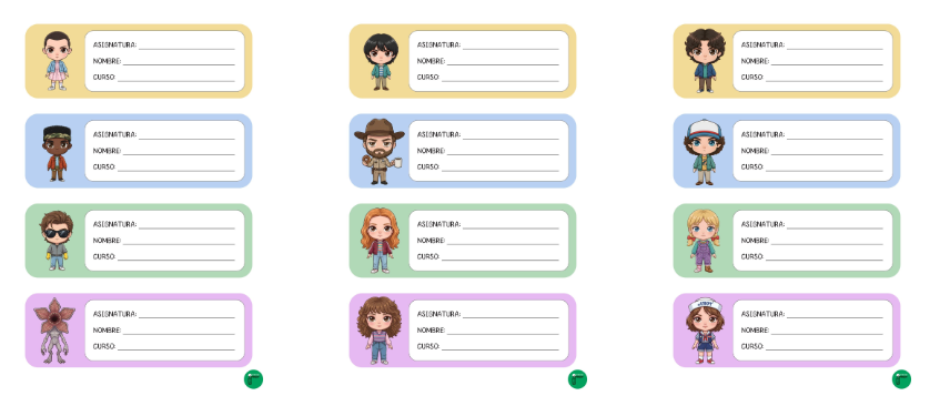 - Etiquetas coloridas para cuadernos con los personajes de Stranger Things