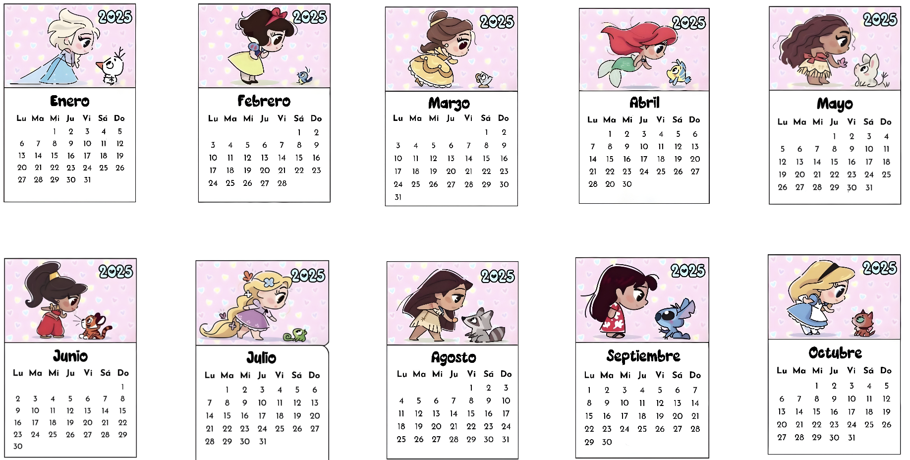 Bonito calendario 2025 entrañables princesas Disney Publicado por orientacionandujar el 8 enero, 2025