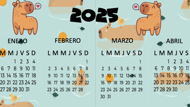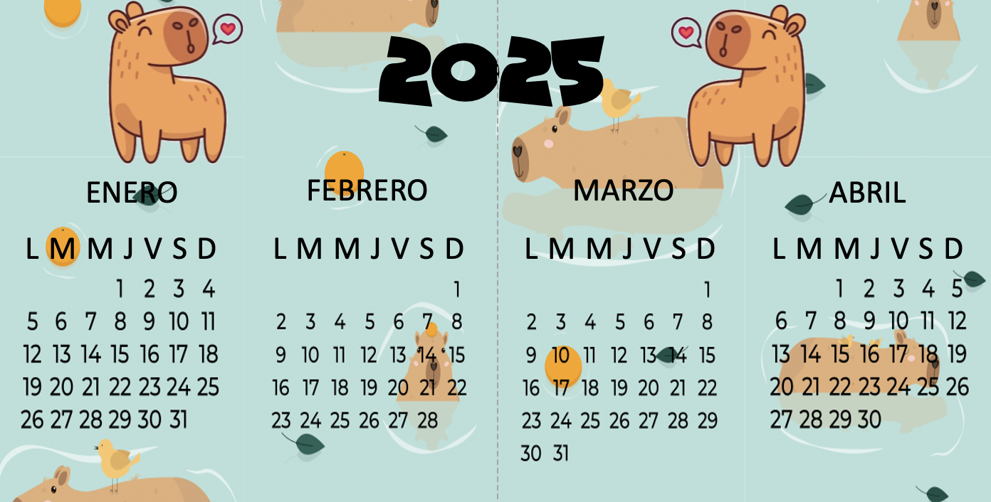 BONITO CALENDARIO A4 2025 CAPIBARA destacada