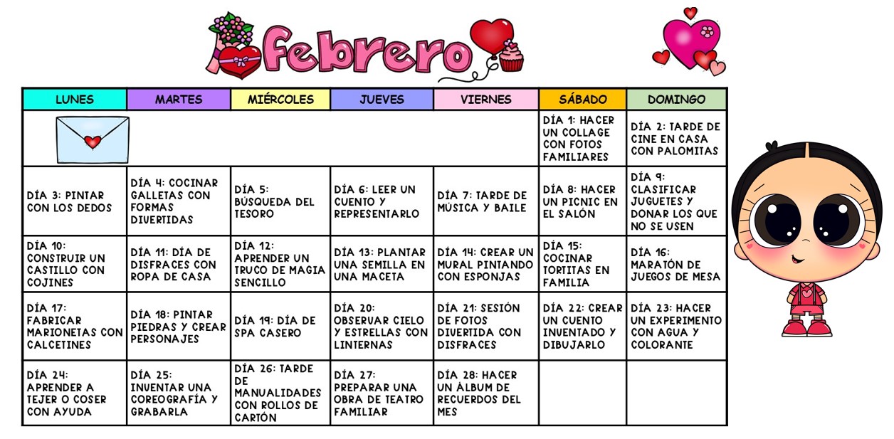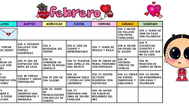 calendario actividades divertidas febrero 2025