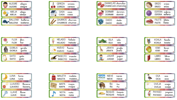 Tarjetas formato llavero del abecedario para lectoescritura especial TEA
