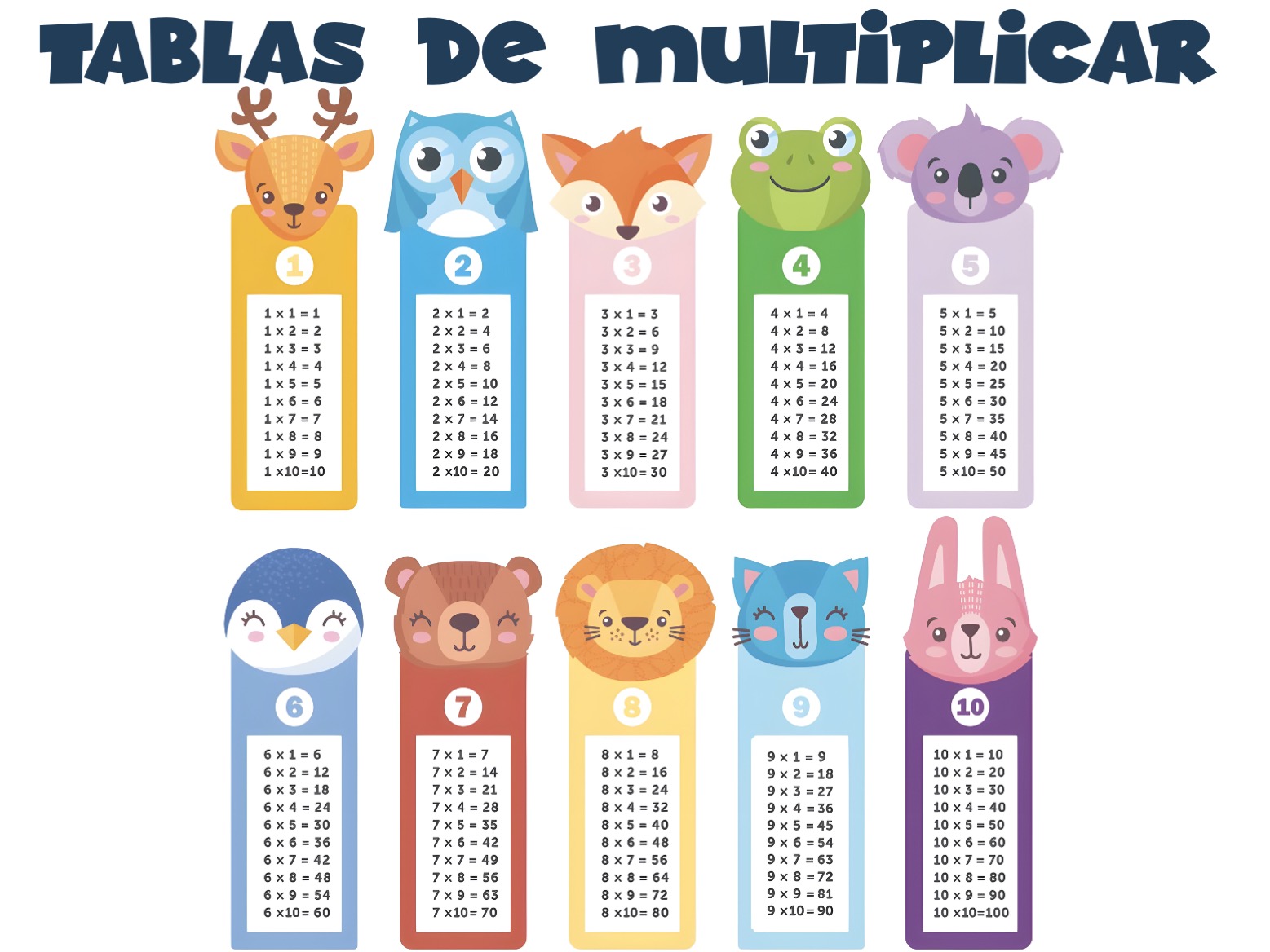 TABLAS DE MULTIPLICAR FORMATO POSTER con bonitos animales gratis Publicado por orientacionandujar el 9 febrero, 2025