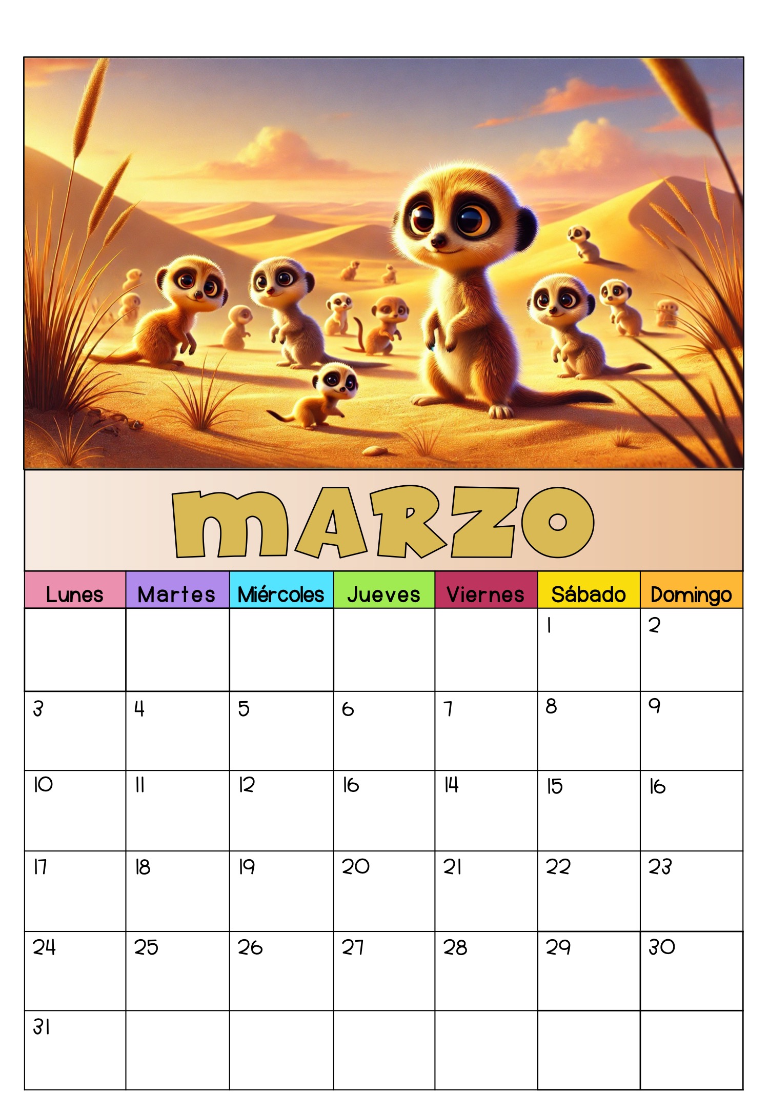 CALENDARIO ANOTACIONES MARZO 2025 ANIMALES BEBES 2