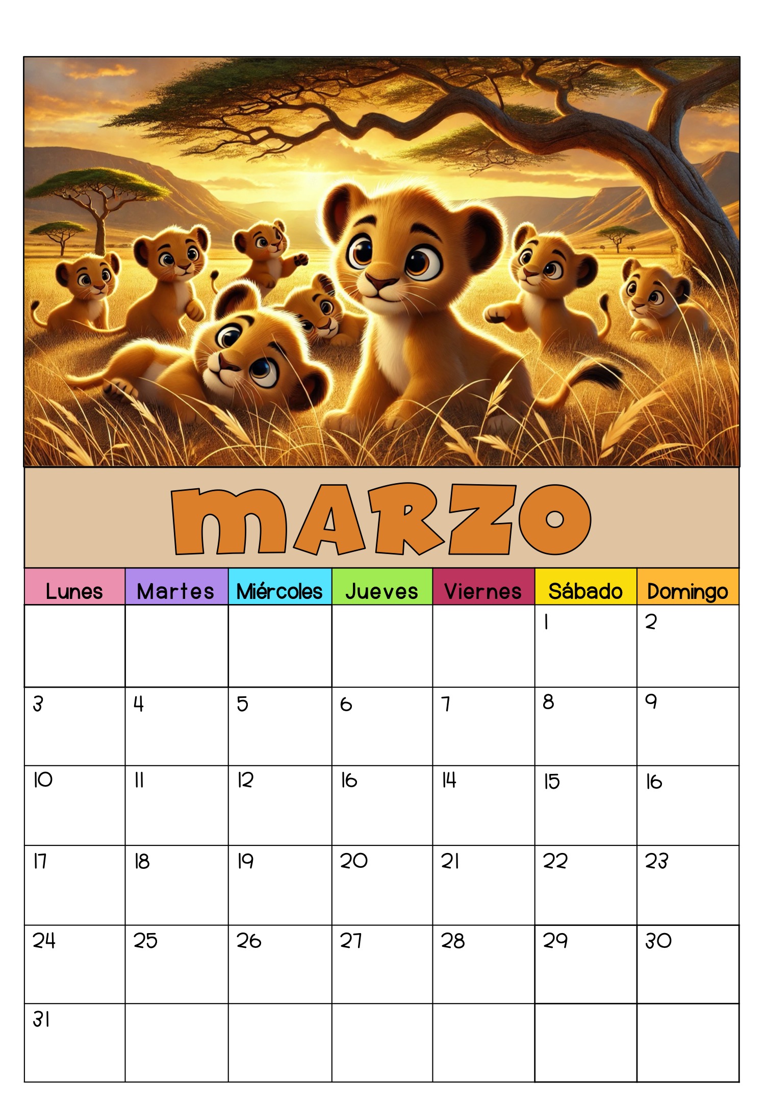 CALENDARIO ANOTACIONES MARZO 2025 ANIMALES BEBES 5 Publicado por orientacionandujar el 14 febrero, 2025