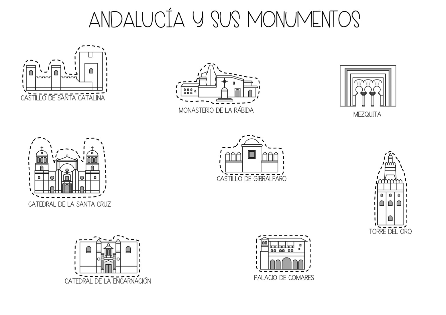 Recorta investiga y pega Andalucía y sus monumentos2 Publicado por orientacionandujar el 20 febrero, 2025