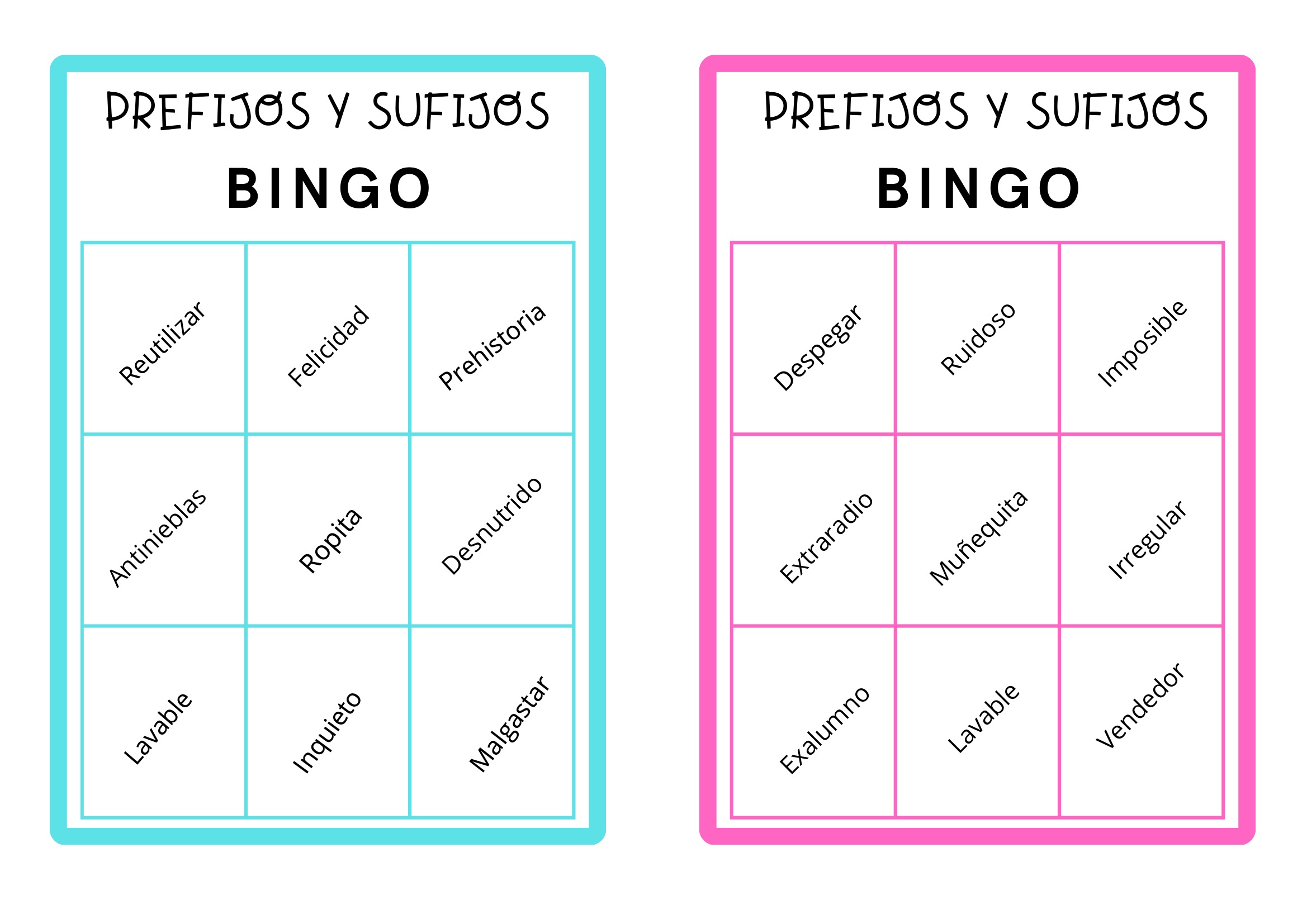 competencia léxica con el bingo de los sufijos y prefijos Publicado por orientacionandujar el 23 febrero, 2025