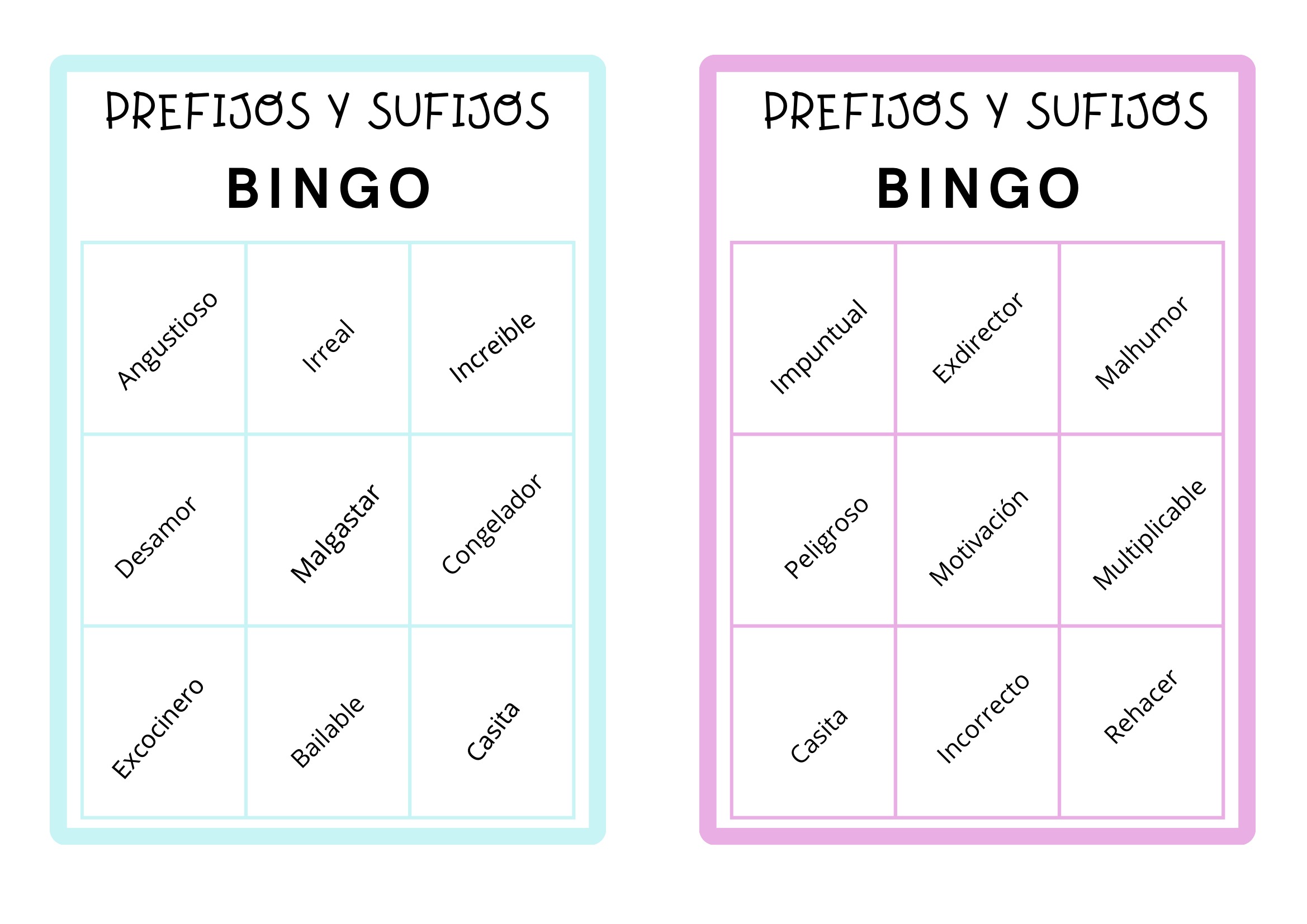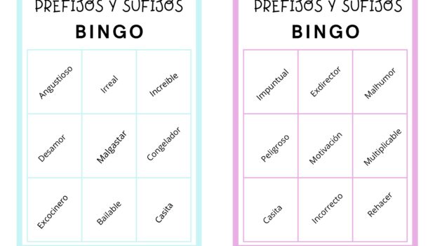 competencia léxica con el bingo de los sufijos y prefijos 4 Publicado por orientacionandujar el 23 febrero, 2025