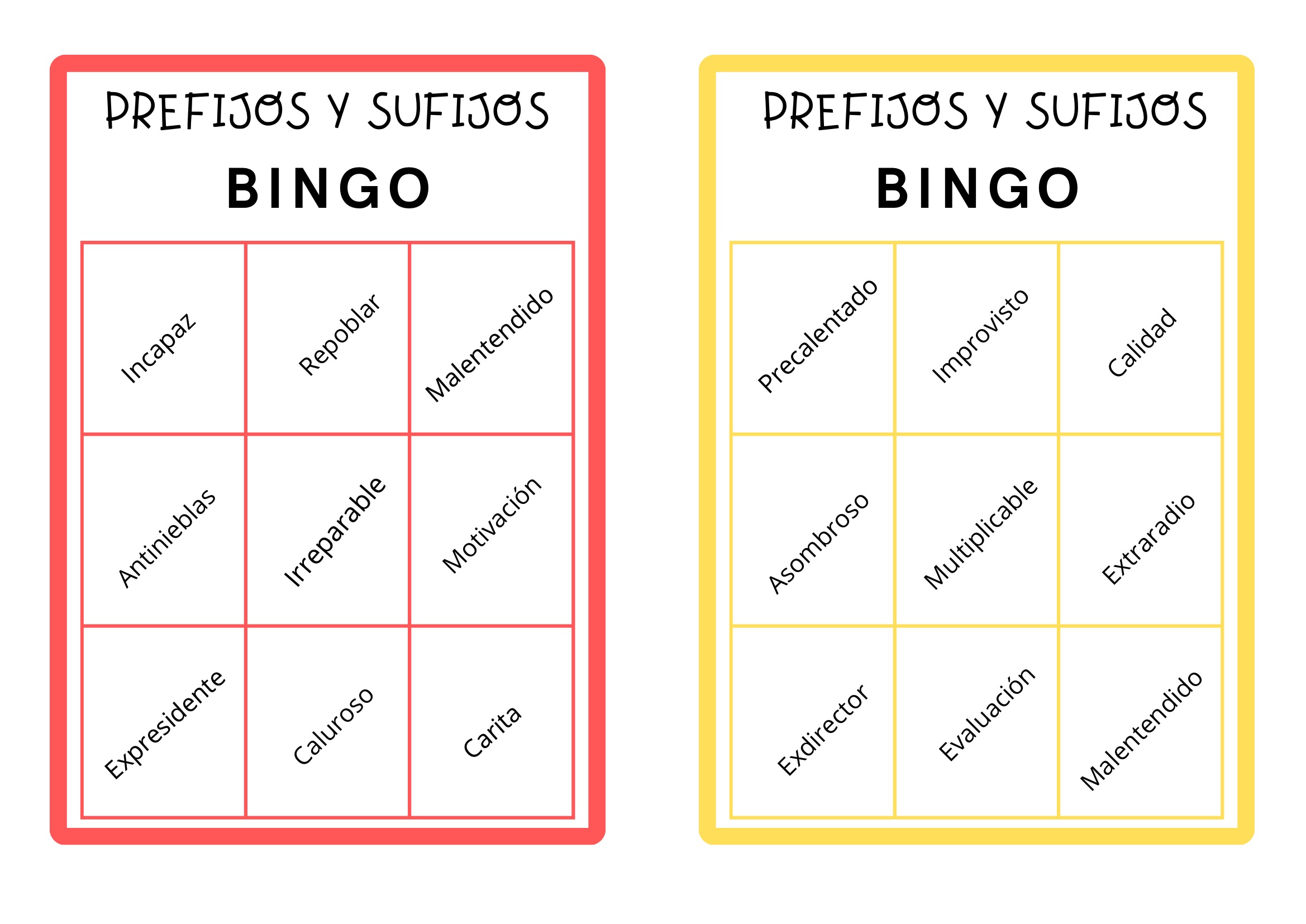 competencia léxica con el bingo de los sufijos y prefijos 8 Publicado por orientacionandujar el 23 febrero, 2025