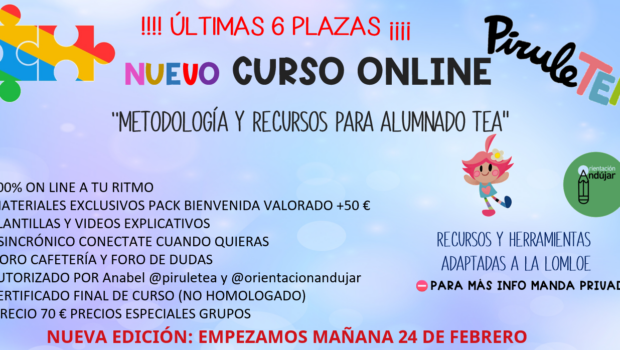 ÚLTIMAS 6 PLAZAS CURSO TEA EMPEZAMOS MAÑANA !NO TE LO PIERDAS¡ Publicado por orientacionandujar el 23 febrero, 2025