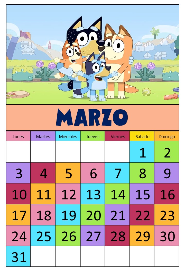 CALENDARIO MARZO 2025 A TODO COLOR FAMILIA BLUEY (7) Publicado por orientacionandujar el 25 febrero, 2025