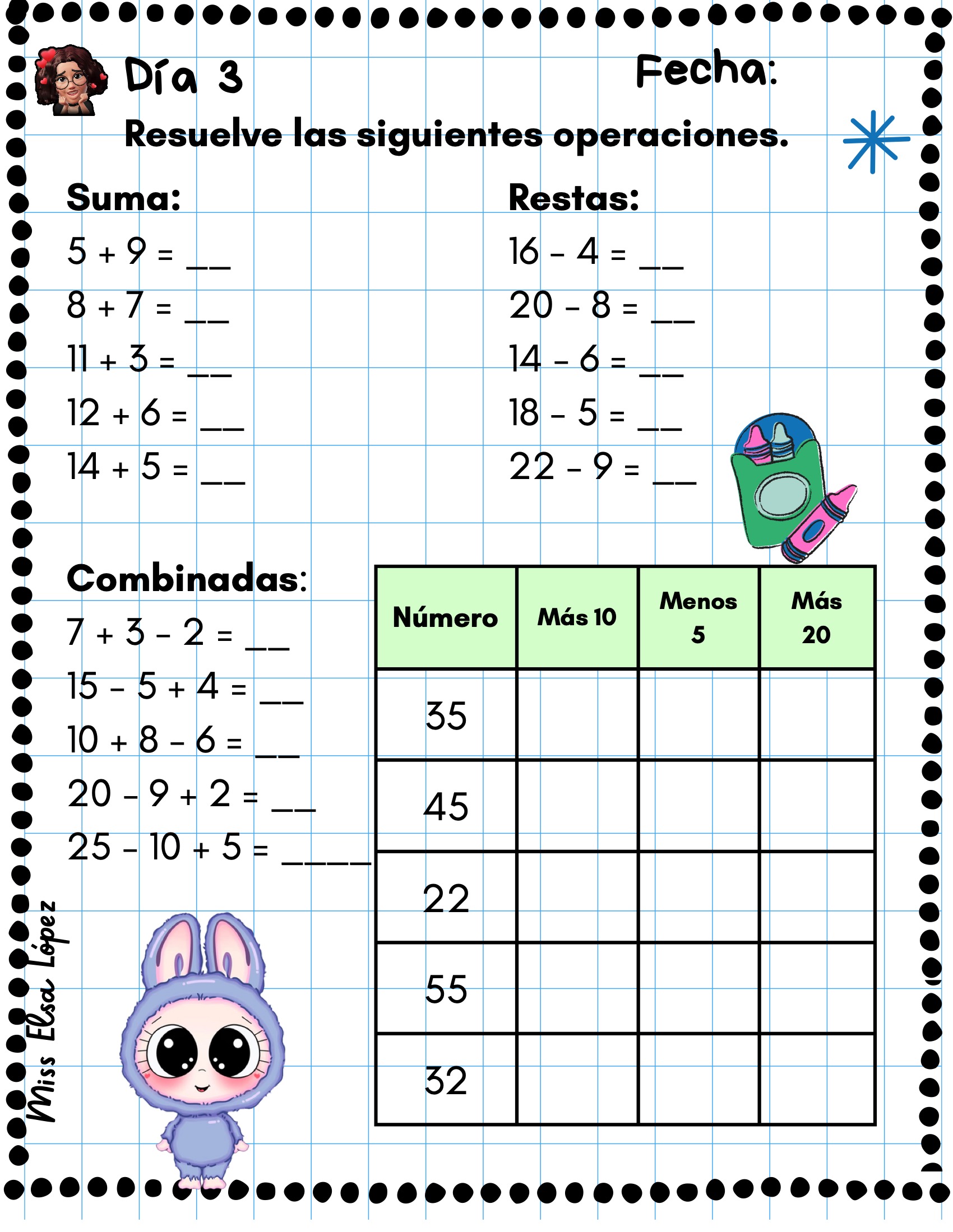 Fichas labubus operaciones sencillas y cálculo mental 4 Publicado por orientacionandujar el 5 abril, 2025