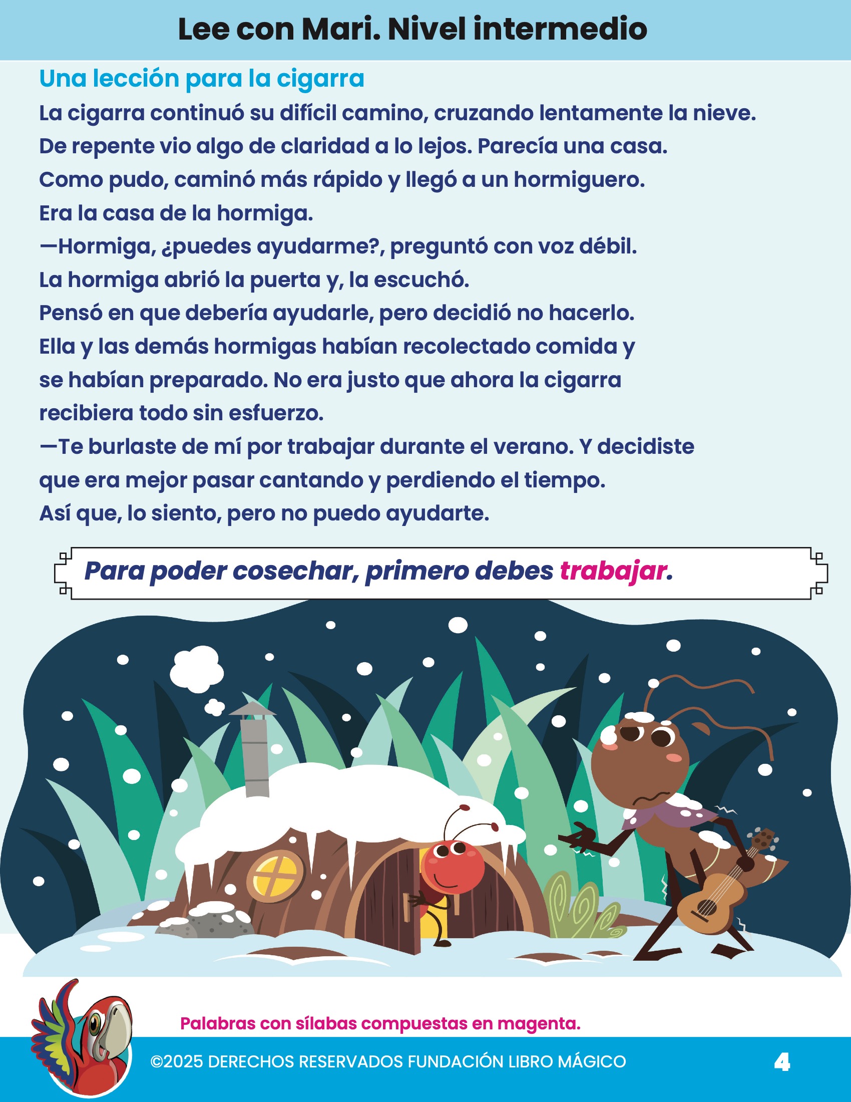Comprensión lectora La cigarra y la hormiga 4
