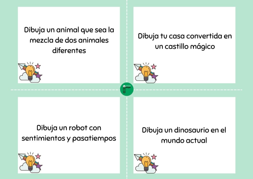 Te presentamos una tarjeta de desafíos creativos de arte, una herramienta práctica y sencilla para que tus alumnos exploren su imaginación y practiquen sus habilidades artísticas mientras esperan. Cada tarjeta presenta un reto artístico diferente, que puede ir desde dibujar un dinosaurio en el mundo actual hasta inventar un superhéroe. Estas tarjetas fomentan la creatividad, la imaginación y la expresión personal, al tiempo que ofrecen una actividad constructiva y divertida que evita el aburrimiento y la distracción en el aula. Además, al ser desafíos cortos y variados, permiten a los estudiantes explorar diferentes técnicas y temas artísticos de forma autónoma, ayudándolos a desarrollar confianza en sus habilidades y a valorar el arte como una forma de comunicación y juego.