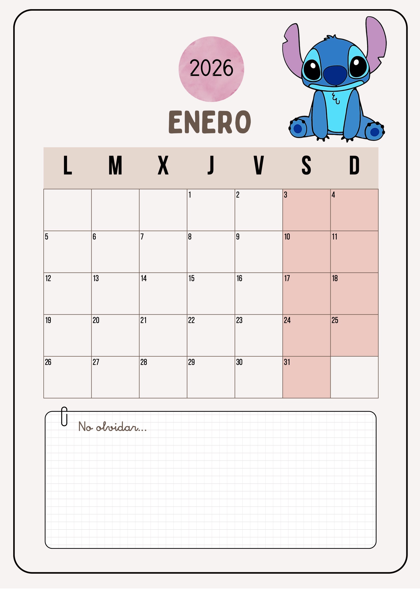 LILO Y STICH CALENDARIO CURSO 2025-2026 5