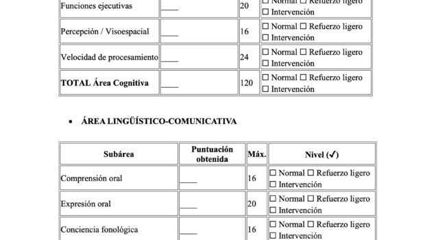 CUESTIONARIO DE EVALUACIÓN INICIAL POR ÁREAS DE DESARROLLO 5 a 7 años 13 Publicado por orientacionandujar el 13 septiembre, 2025