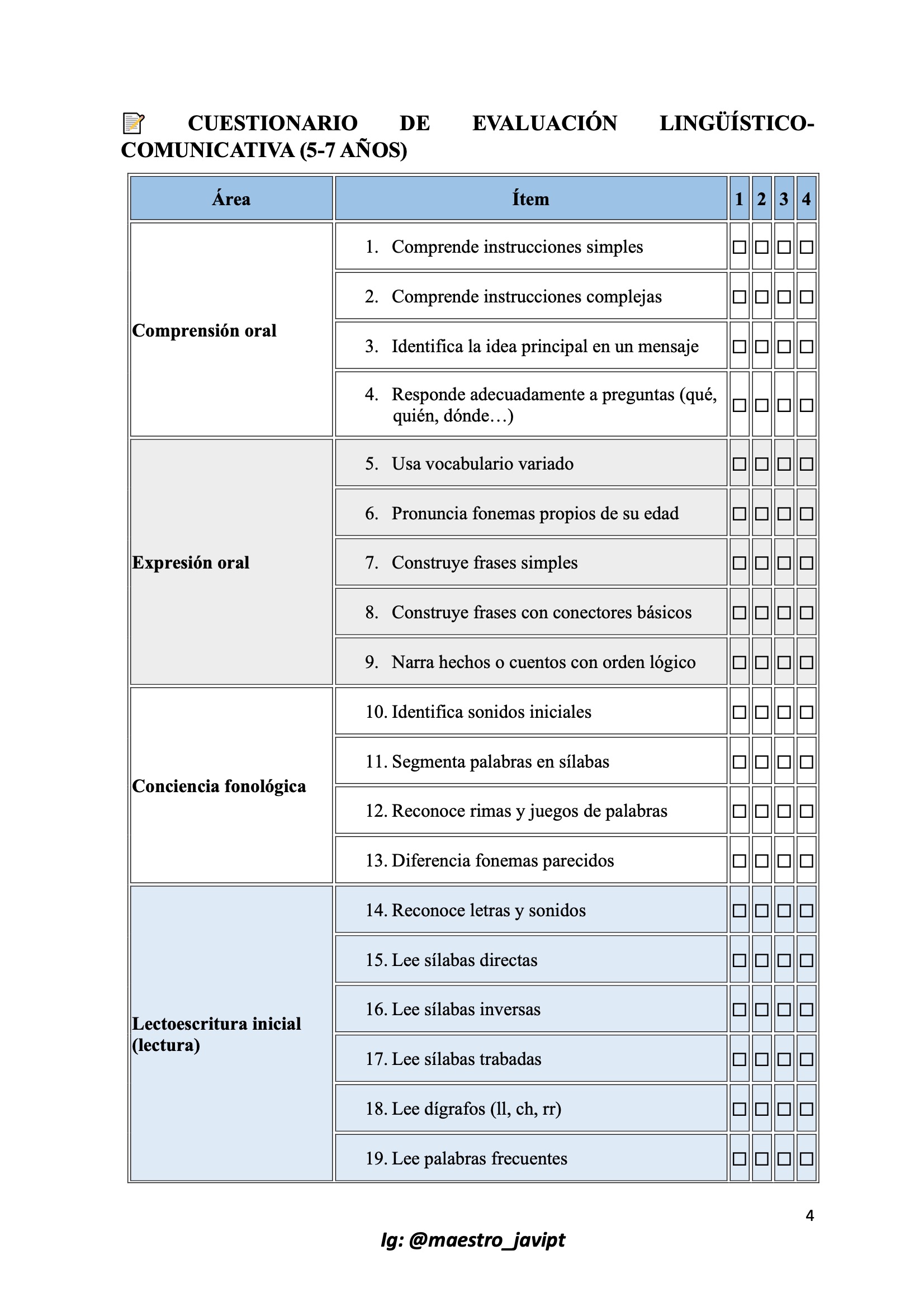 CUESTIONARIO DE EVALUACIÓN INICIAL POR ÁREAS DE DESARROLLO 5 a 7 años 5 Publicado por orientacionandujar el 13 septiembre, 2025