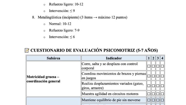 CUESTIONARIO DE EVALUACIÓN INICIAL POR ÁREAS DE DESARROLLO 5 a 7 años 8 Publicado por orientacionandujar el 13 septiembre, 2025