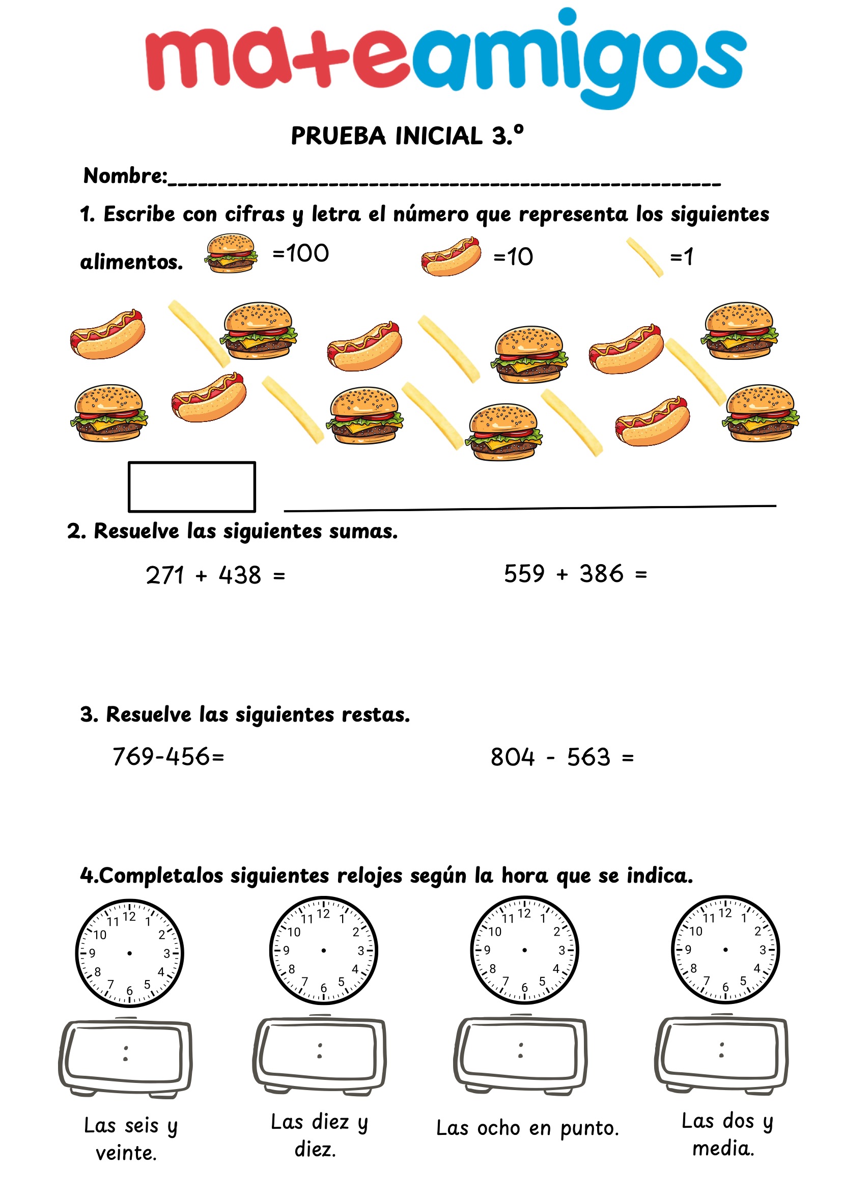 PRUEBA INICIAL 3º PRIMARIA MATEMÁTICAS