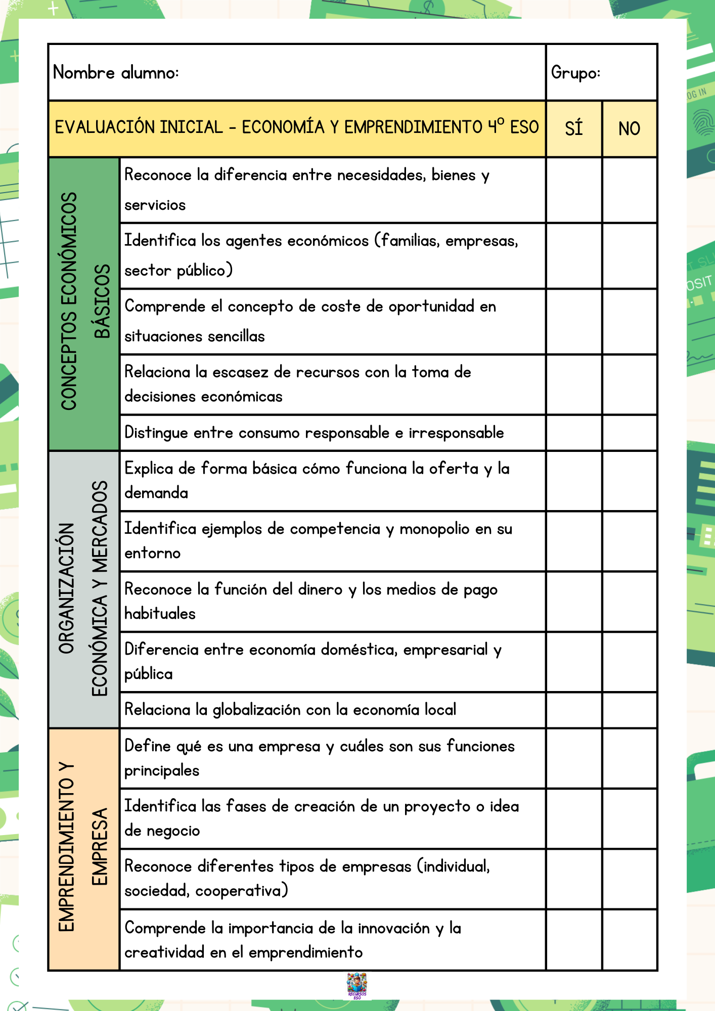 INDICADORES LOMLOE EVALUACION INICIAL ECONOMÍA Y EMPRENDIMIENTO 4º ESO (1) Publicado por orientacionandujar el 18 septiembre, 2025