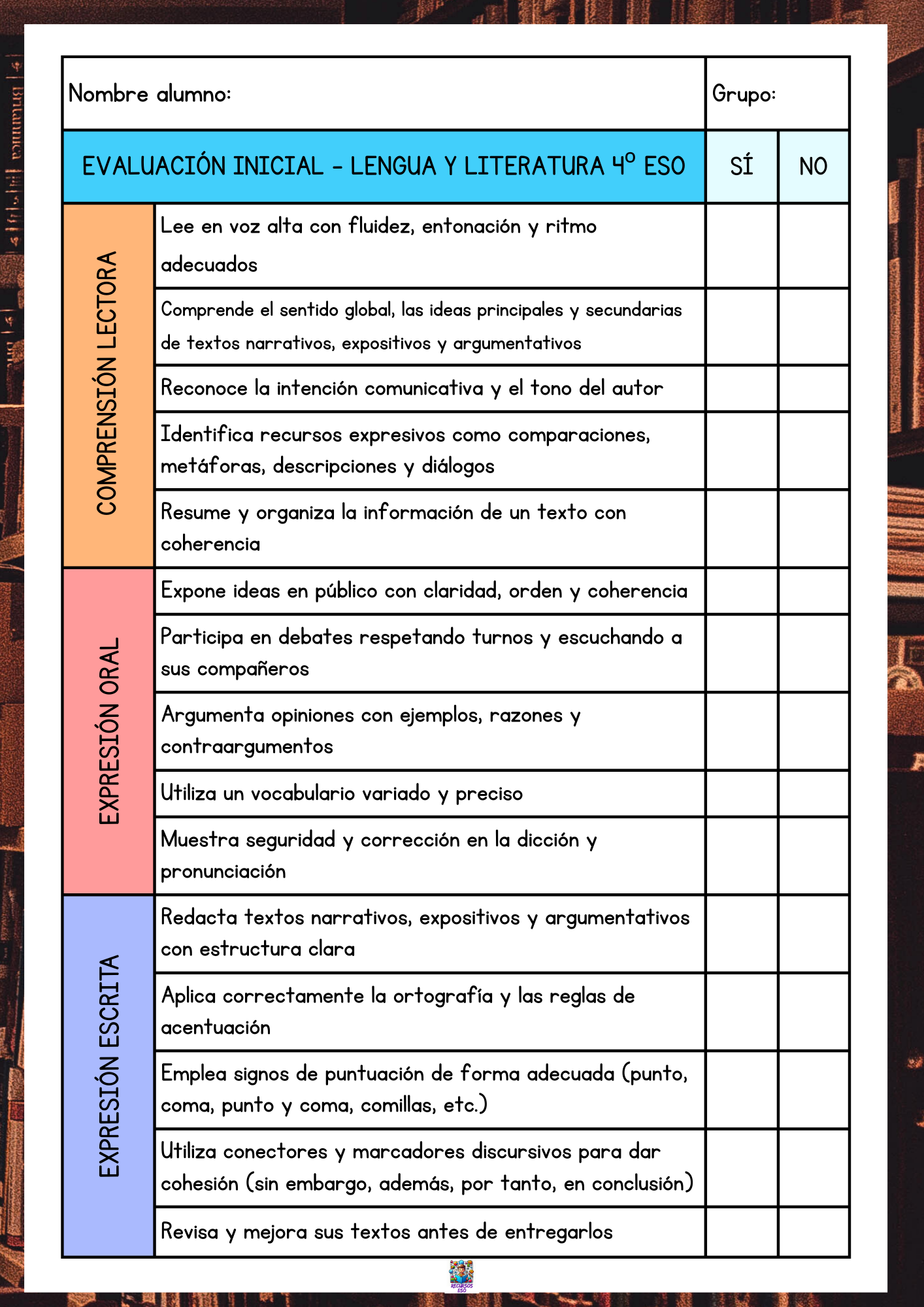 INDICADORES LOMLOE EVALUACION INICIAL LENGUA Y LITERATURA 4º ESO (1) Publicado por orientacionandujar el 18 septiembre, 2025