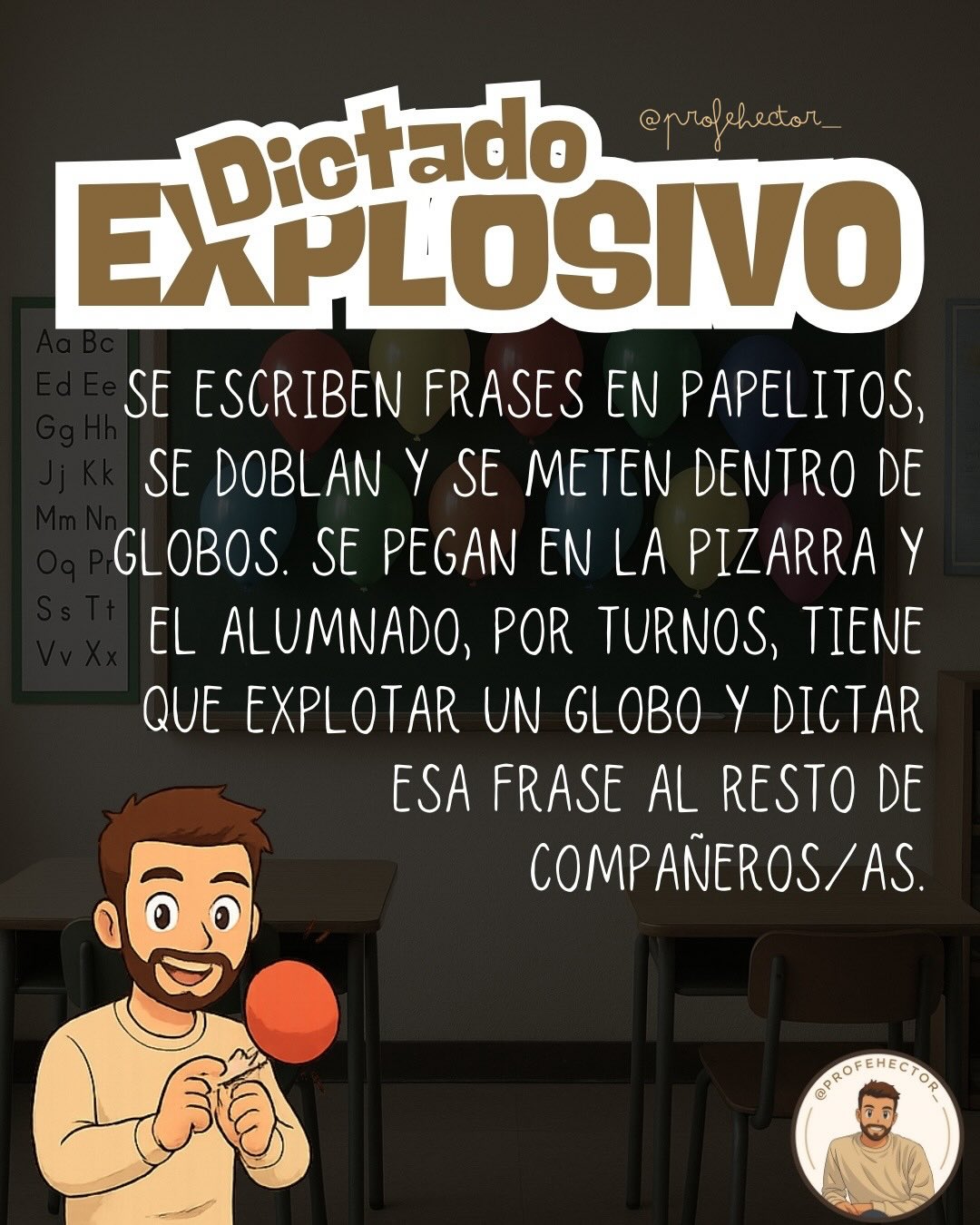 • Dictado explosivo: frases dentro de globos que se explotan al azar.