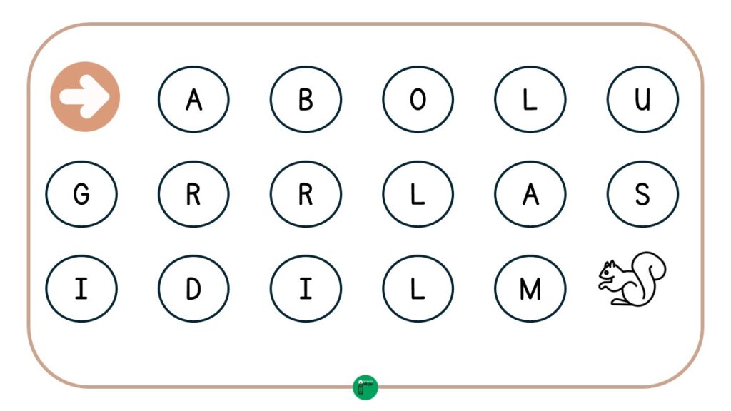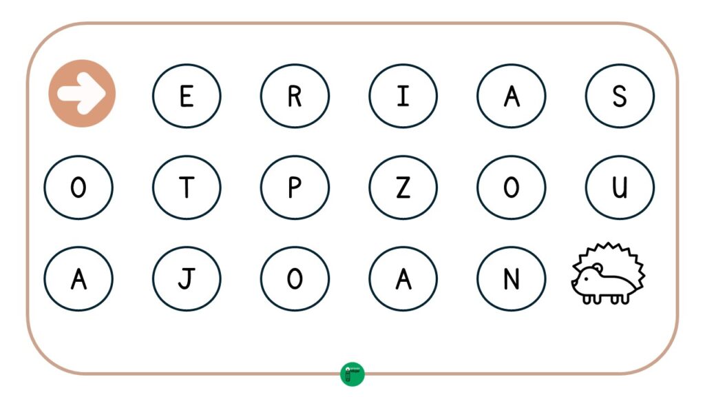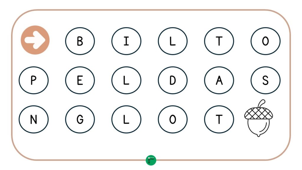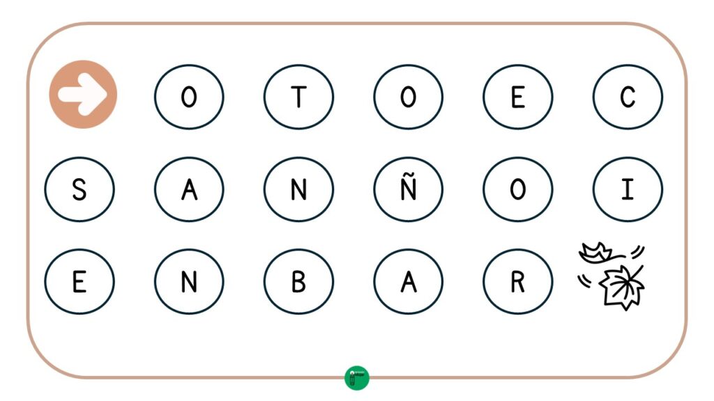 En el laberinto, cada paso está representado por una letra y, al seguir la secuencia correcta, los estudiantes llegarán al final, donde encontrarán el dibujo correspondiente a la palabra. Este recurso, además de ser entretenido, permite reforzar tanto el reconocimiento de las letras como la correspondencia entre sonidos y grafías. Además, en esta ocasión; hemos utilizado vocabulario de otoño, por lo que se trata de una actividad ideal apra hacer durante estas semanas en clase.
