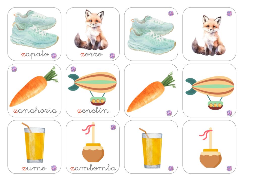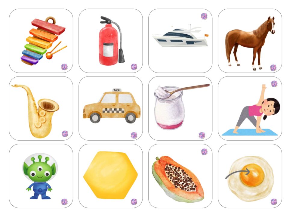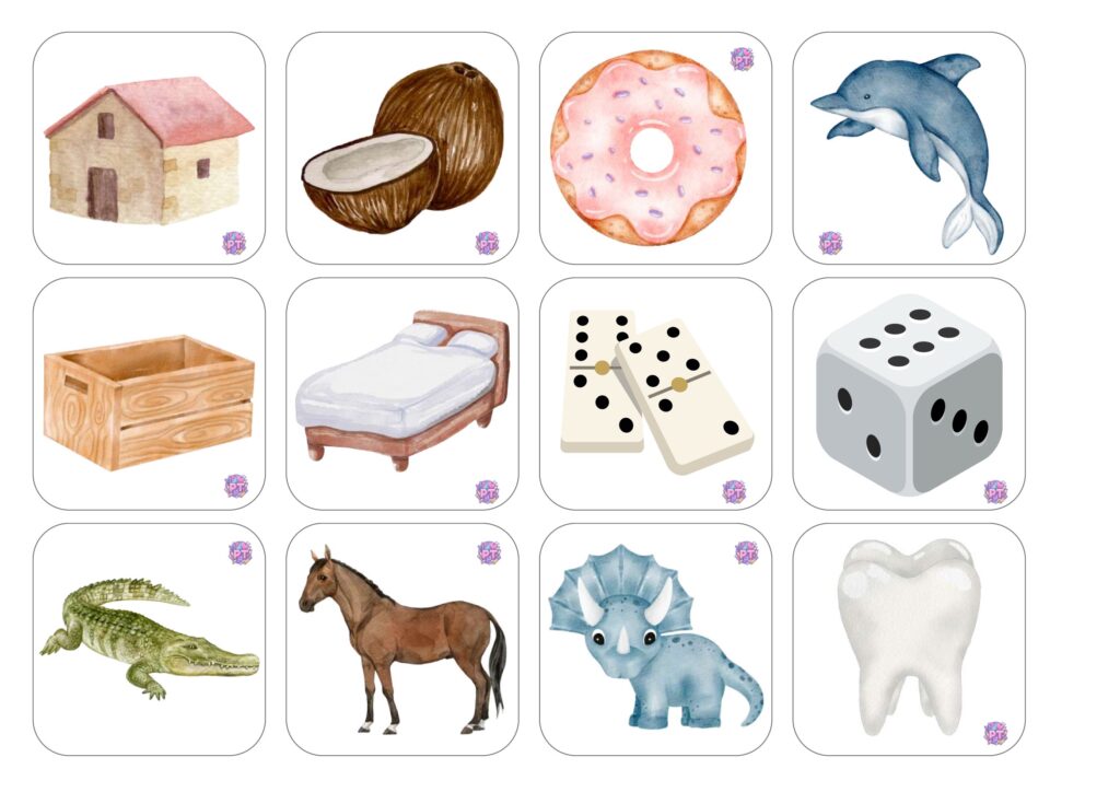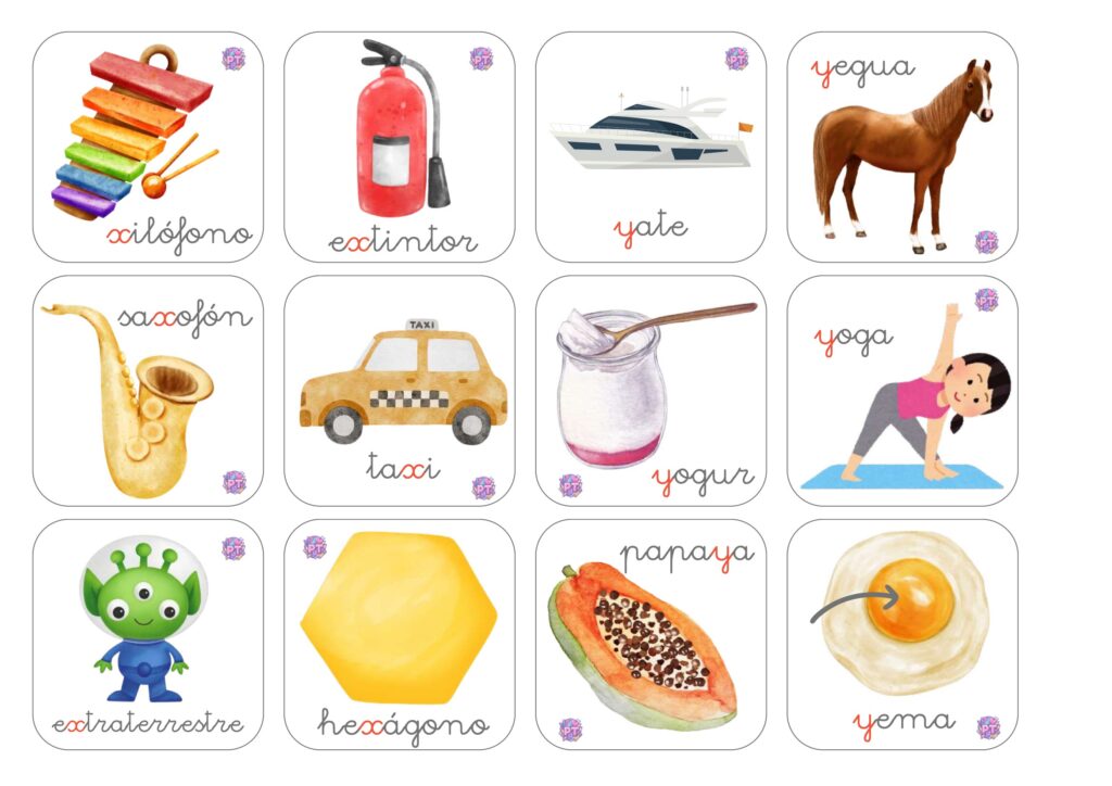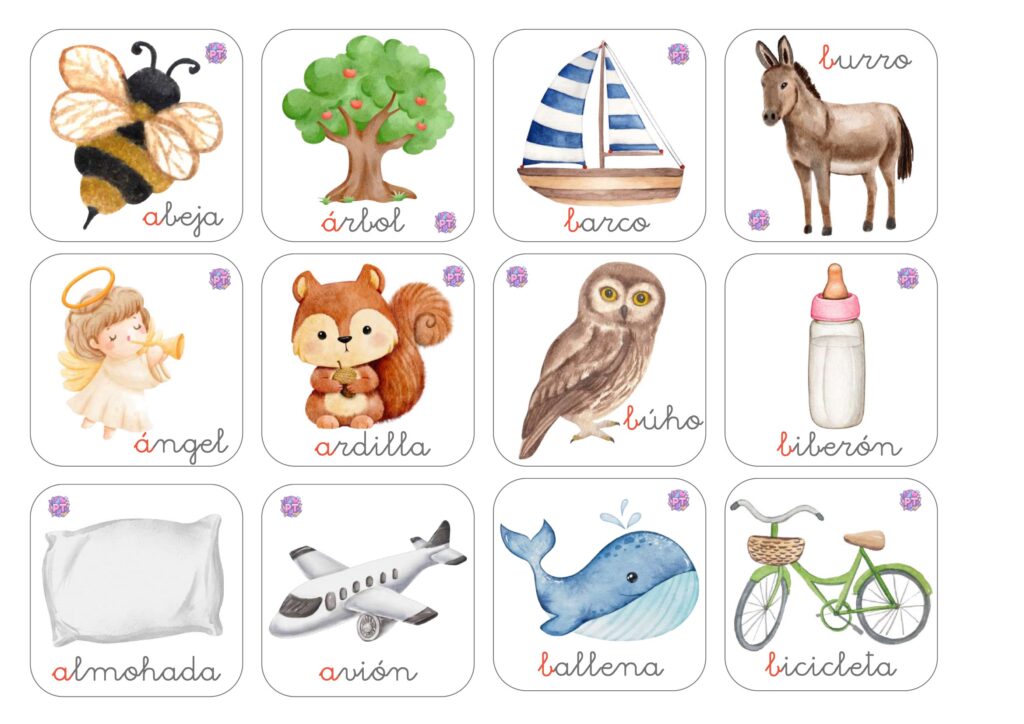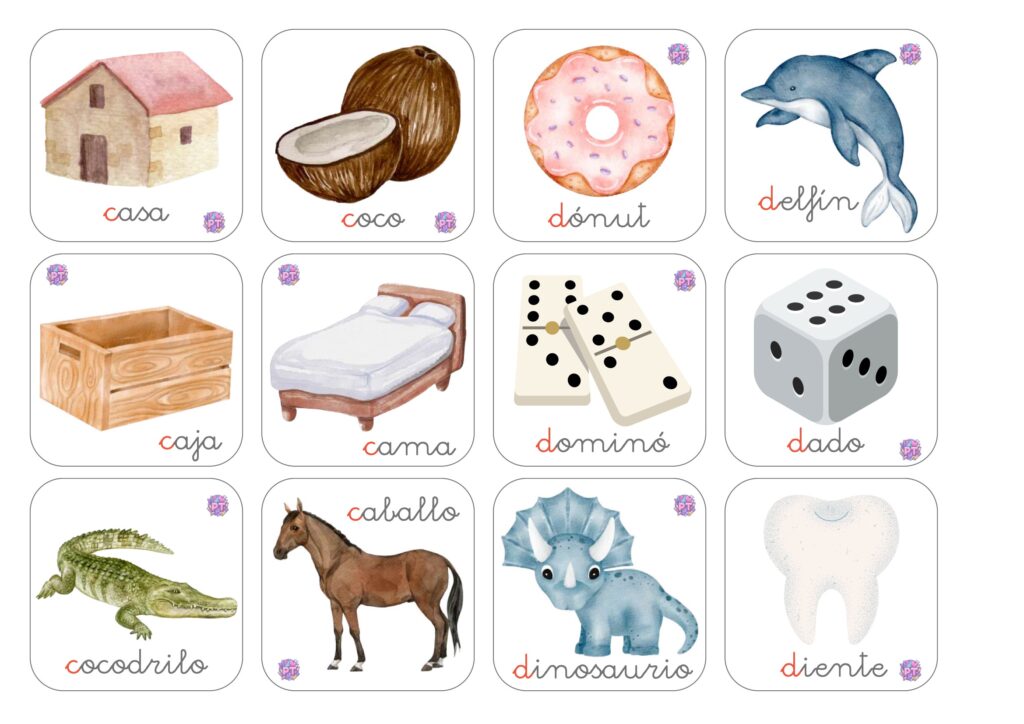 Palabras de uso cotidiano que facilitan la identificación del sonido inicial.