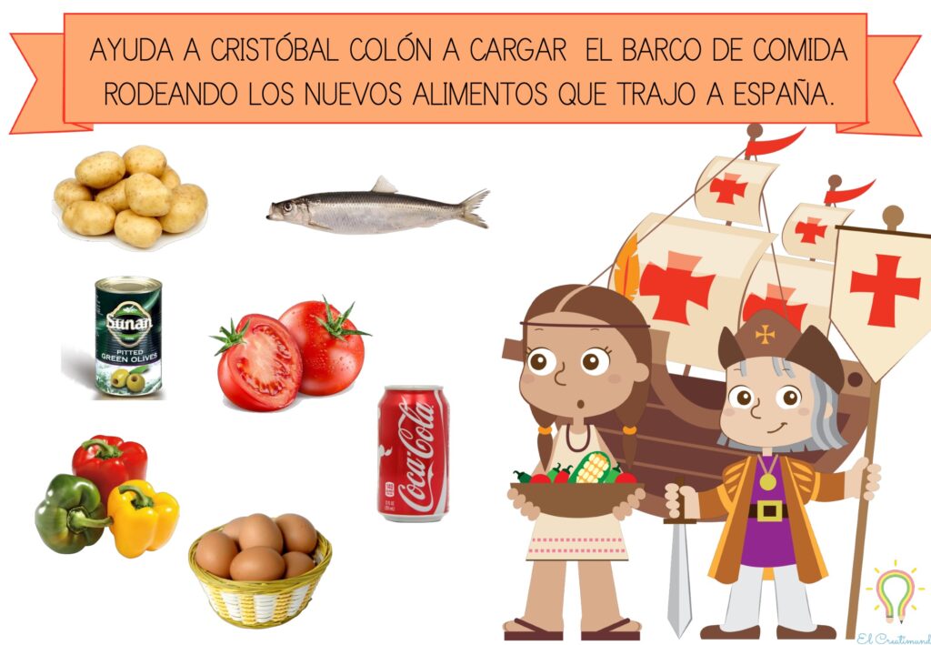 Actividades de asociación sobre los alimentos traídos de América a España, como la patata, el tomate y el pimiento.