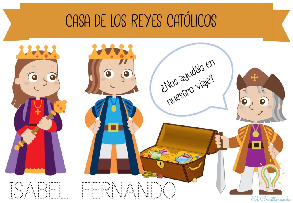 Actividades sobre Cristóbal Colón y los Reyes Católicos, con ilustraciones sencillas y comprensibles.