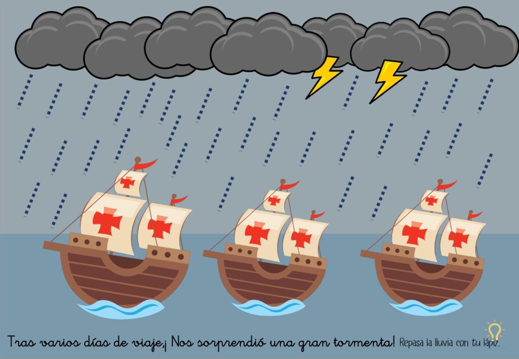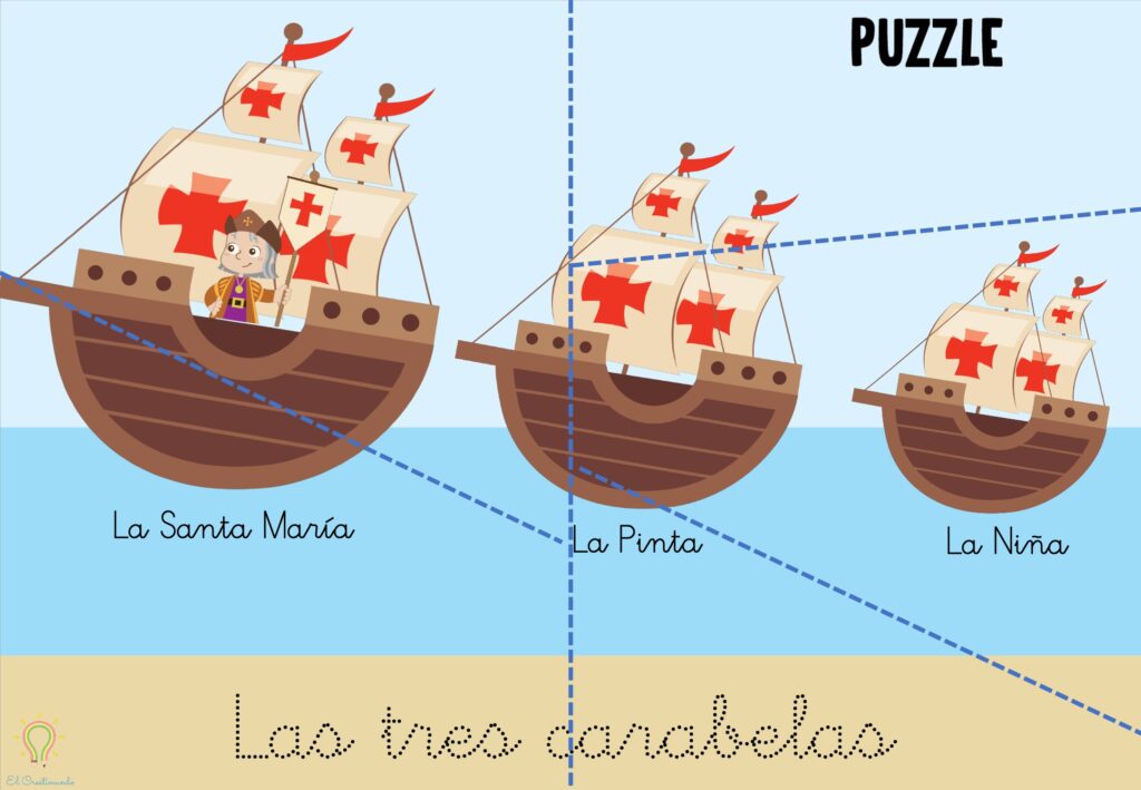 Ejercicios para identificar las tres carabelas: La Santa María, La Pinta y La Niña.