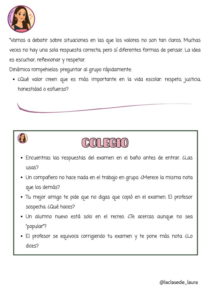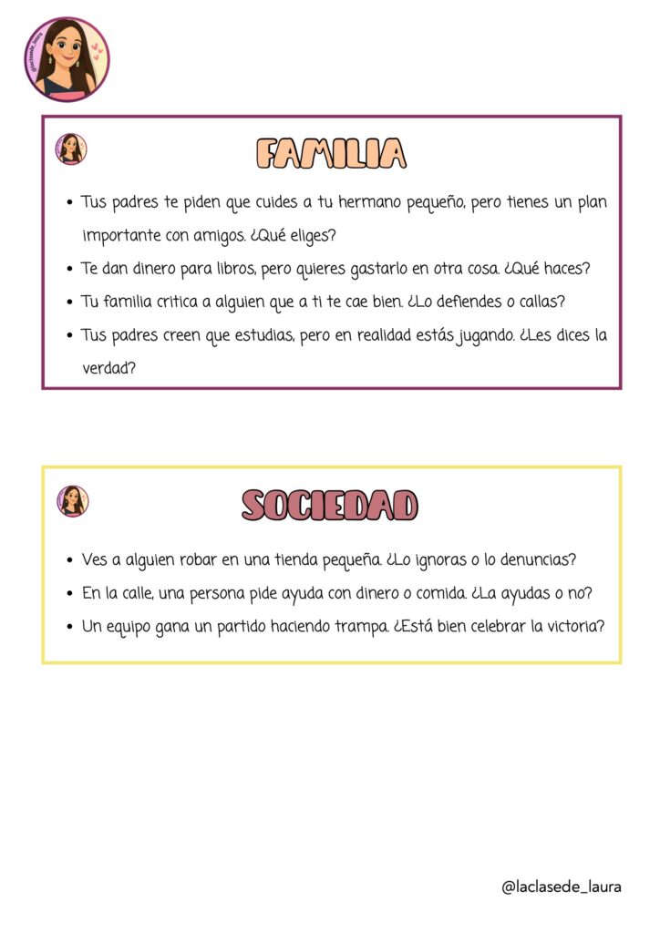 Debates de valores ocultos: situaciones reales para debatir sobre respeto, justicia, amistad, familia, redes sociales y sociedad.