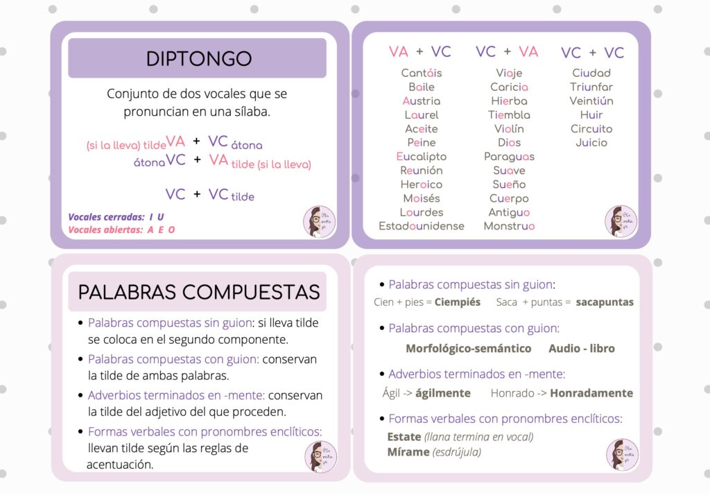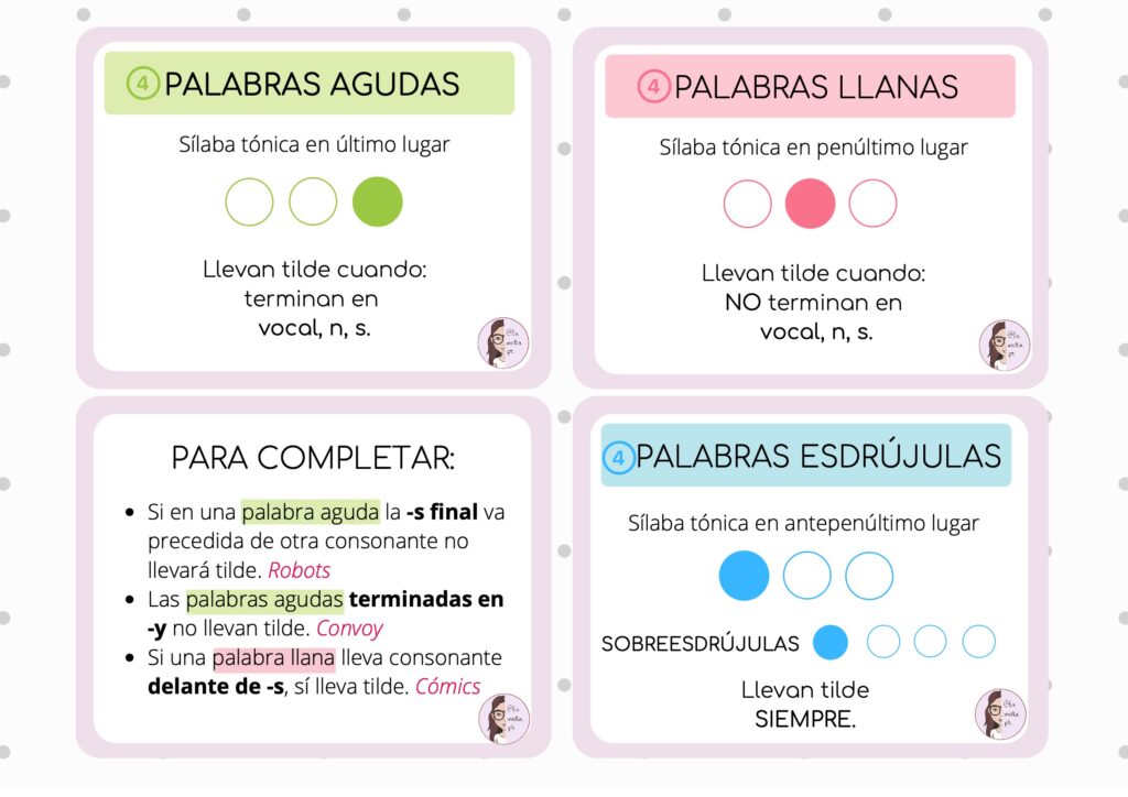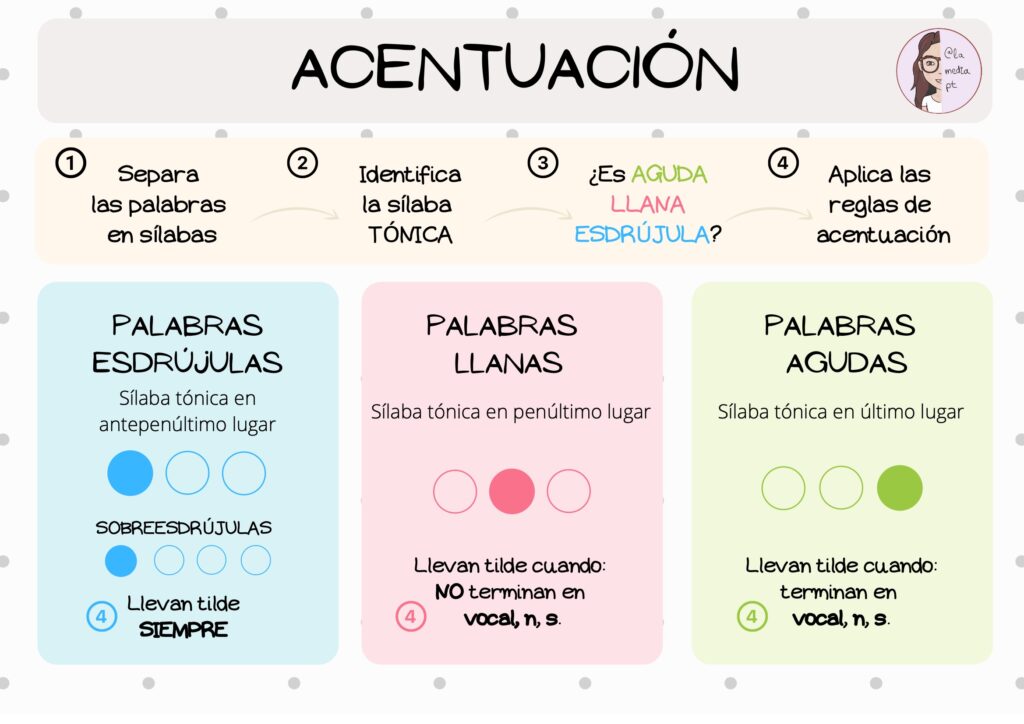 Reglas completas de acentuación: palabras agudas, llanas, esdrújulas y sobresdrújulas.