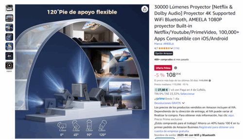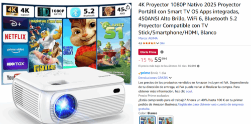📽️ Proyectores en descuento: cada vez más presentes en aulas y hogares. Son el recurso perfecto para presentar diapositivas, mostrar vídeos, dinamizar clases o incluso montar una tarde de cine educativo en familia.