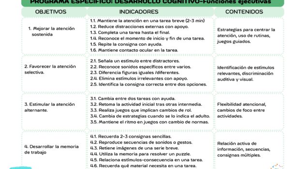 PROGRAMA ESPECÍFICO DESARROLLO COGNITIVO-Funciones ejecutivas