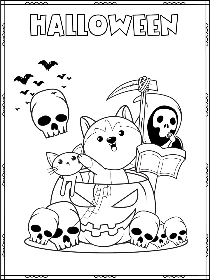 Este cuaderno contiene 15 láminas de Halloween listas para imprimir y colorear