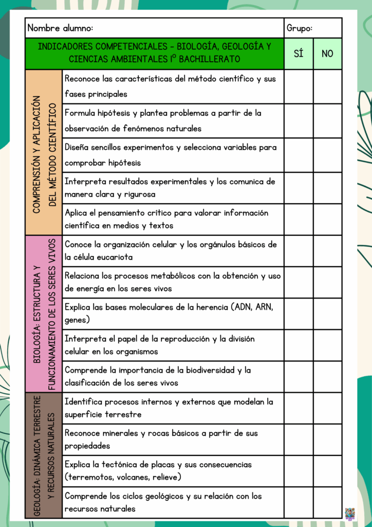 Indicadores competenciales LOMLOE – Biología, Geología y Ciencias Ambientales – 1º Bachillerato