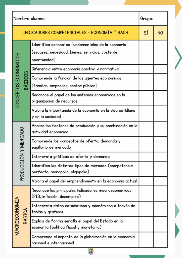 Indicadores competenciales LOMLOE – Economía – 1º Bachillerato