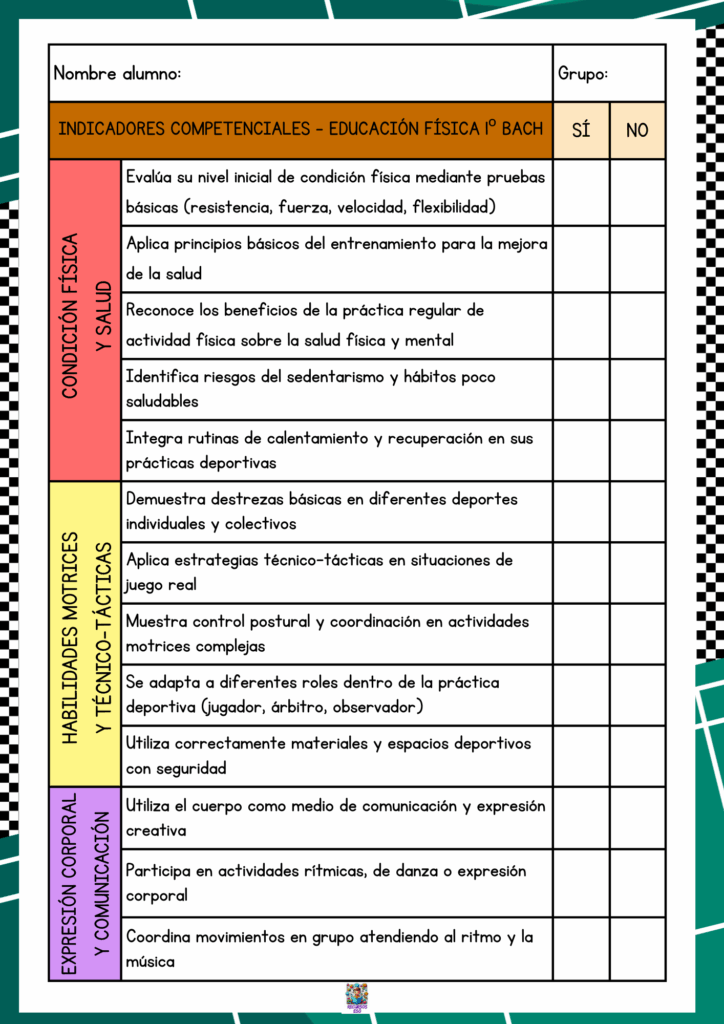 Indicadores competenciales LOMLOE – Educación Física – 1º Bachillerato