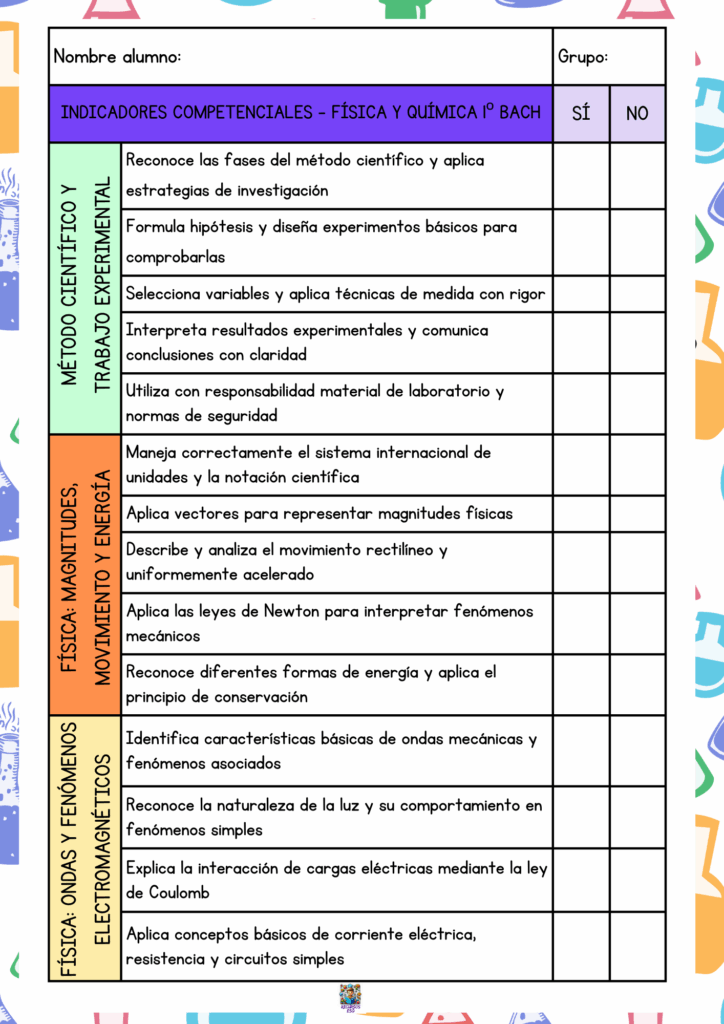 Indicadores competenciales LOMLOE – Física y Química – 1º Bachillerato