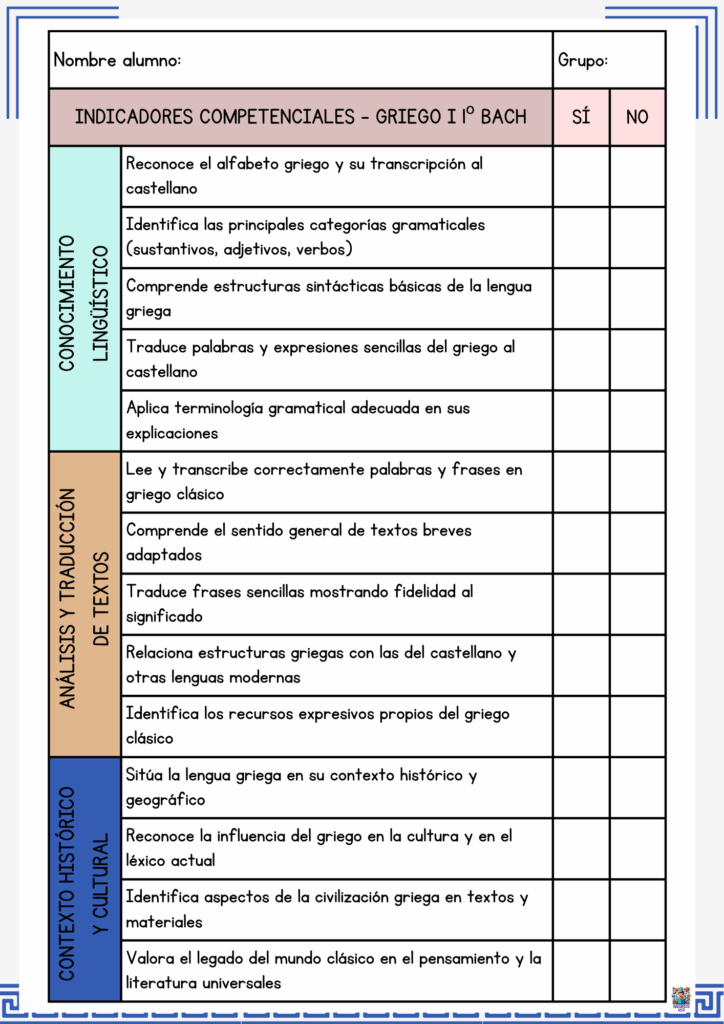 Indicadores competenciales LOMLOE – Griego I – 1º Bachillerato