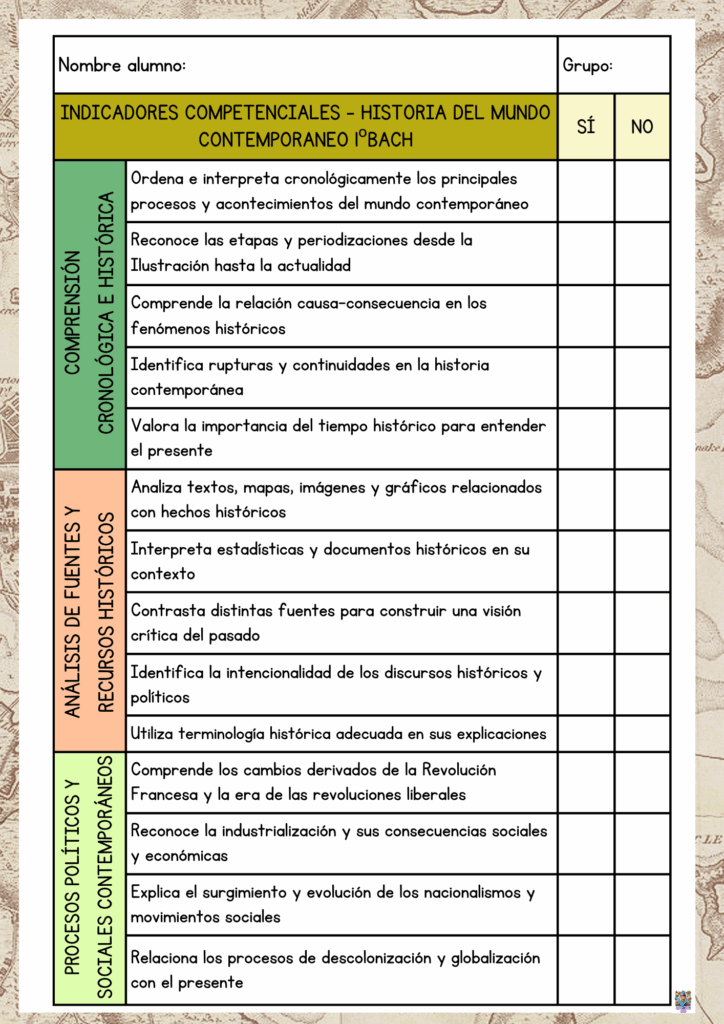 Indicadores competenciales LOMLOE – Historia del Mundo Contemporáneo – 1º Bachillerato