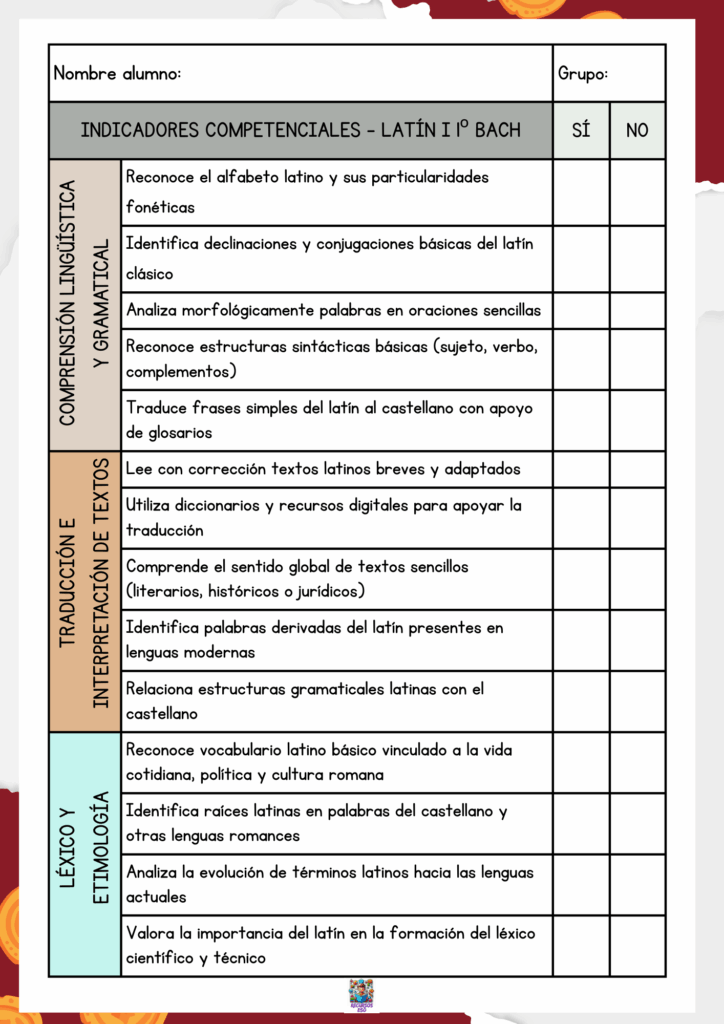 Indicadores competenciales LOMLOE – Latín I – 1º Bachillerato