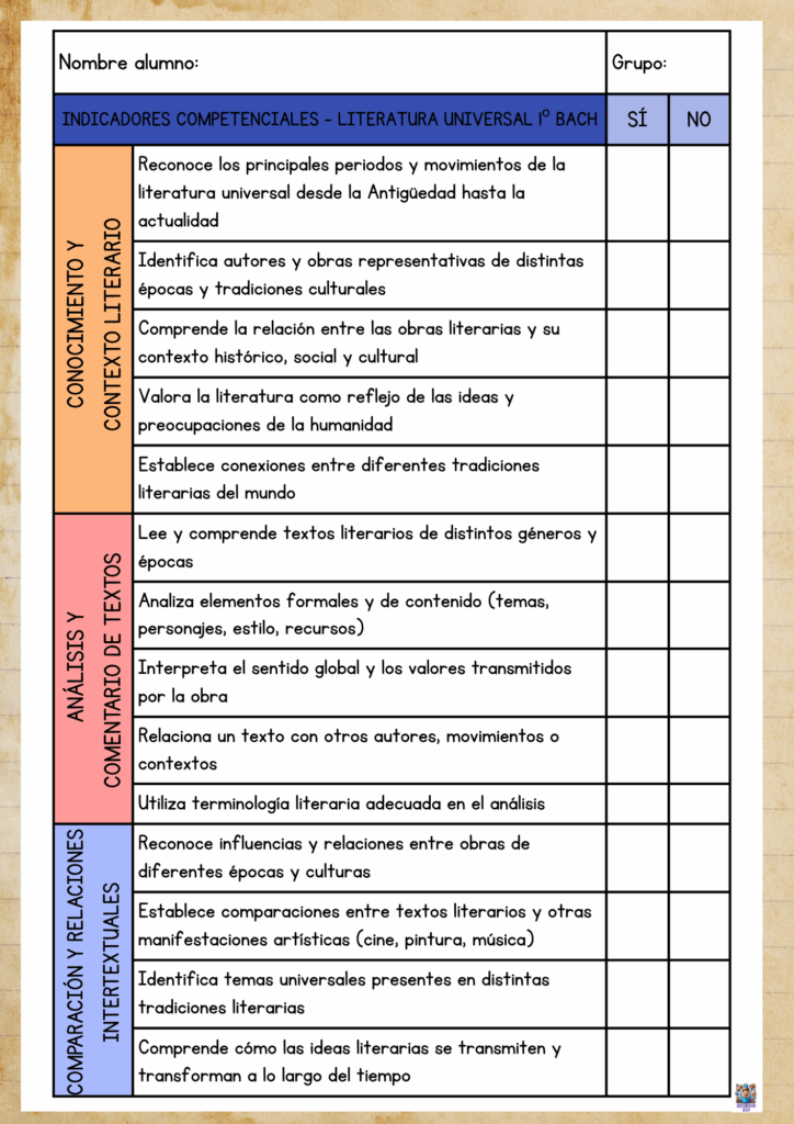 Indicadores competenciales LOMLOE – Literatura Universal – 1º Bachillerato