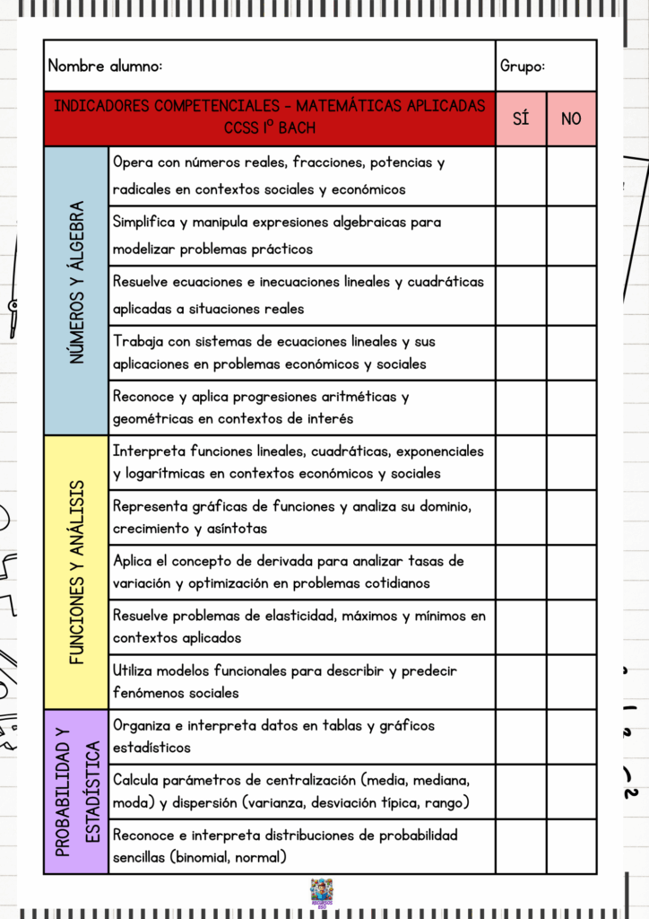 Indicadores competenciales LOMLOE – Matemáticas Aplicadas a las Ciencias Sociales – 1º Bachillerato