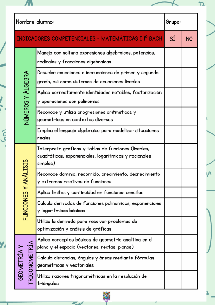 Indicadores competenciales LOMLOE – Matemáticas I – 1º Bachillerato