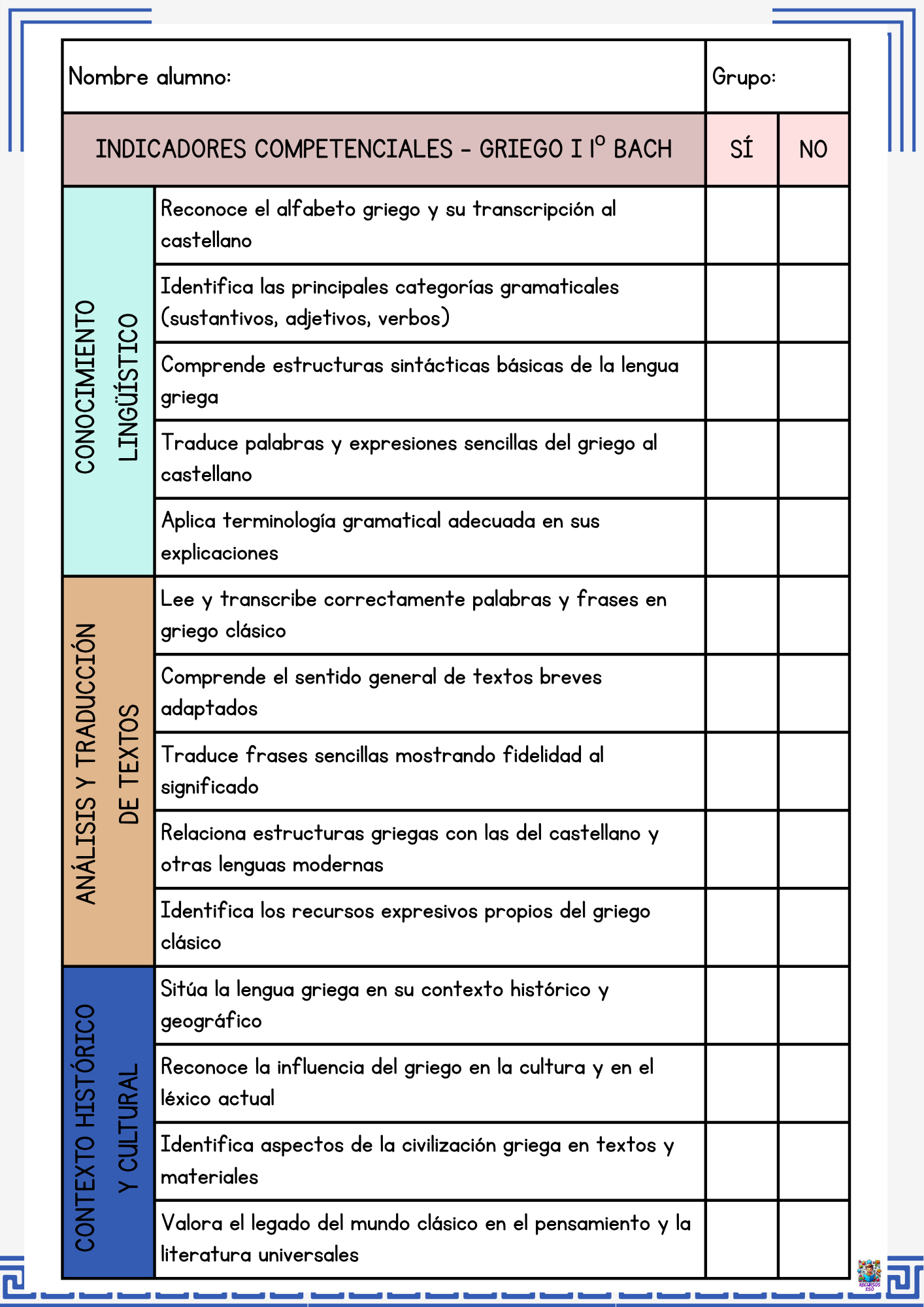 INDICADORES COMPETENCIALES LOMLOE GRIEGO I 1º BACHILLERATO (1) Publicado por orientacionandujar hace 18 horas