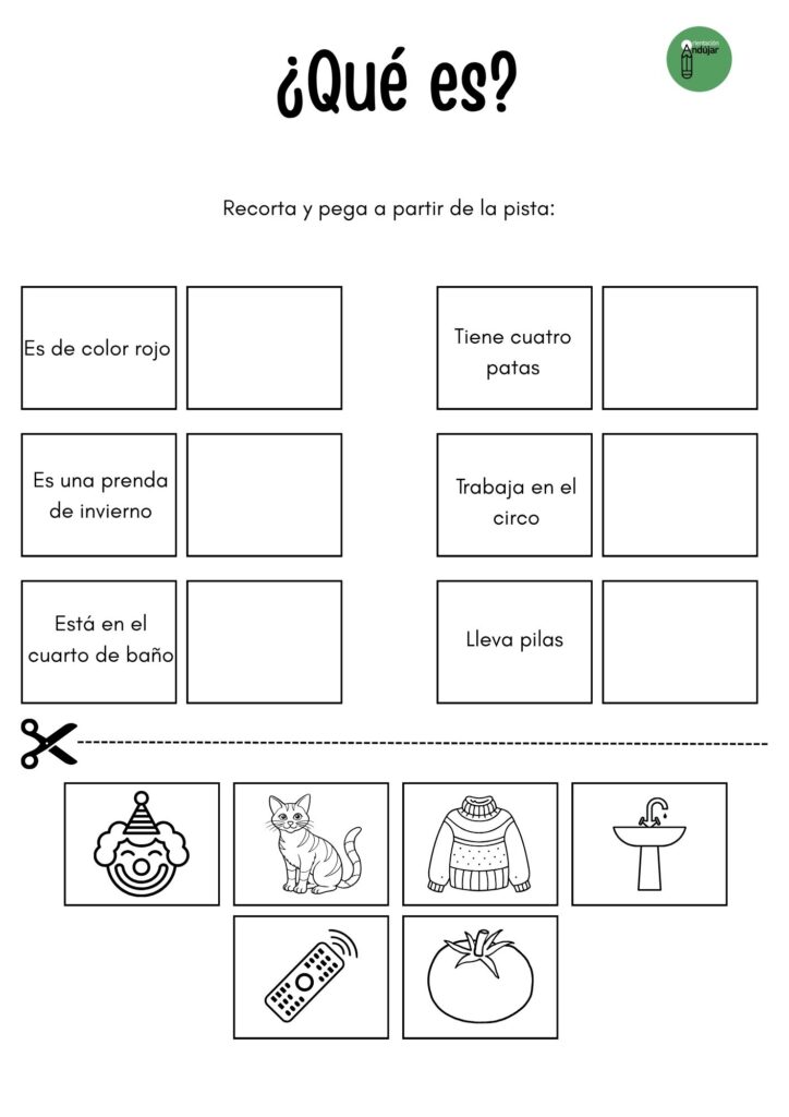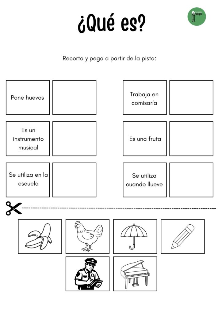 Por eso, hoy compartimos una actividad divertida y manipulativa para estimular el razonamiento y la categorización, en la que los alumnos deberán descubrir de qué elementos se trata a partir de una pista y relacionar cada una con su imagen correspondiente.