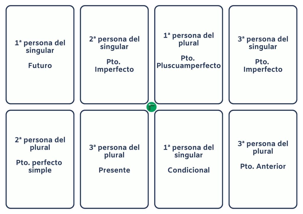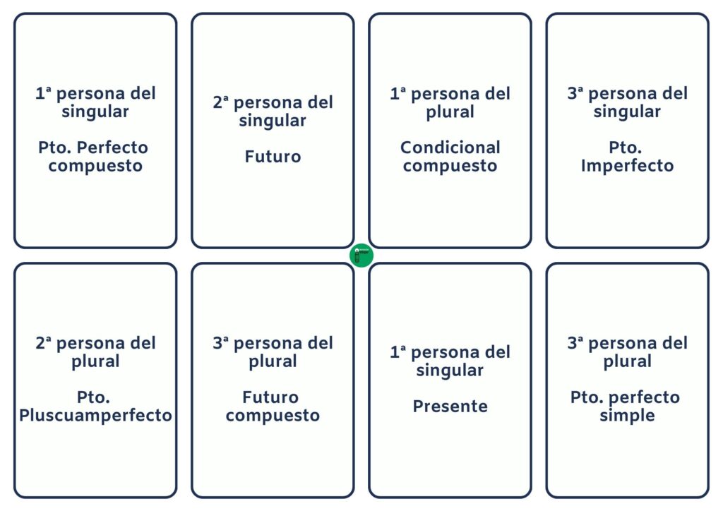 Cartas de tiempos verbales: en ellas aparece indicado el tiempo, la persona y el número (por ejemplo: pretérito perfecto – 1ª persona del singular).