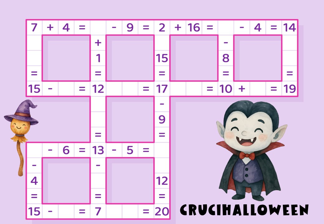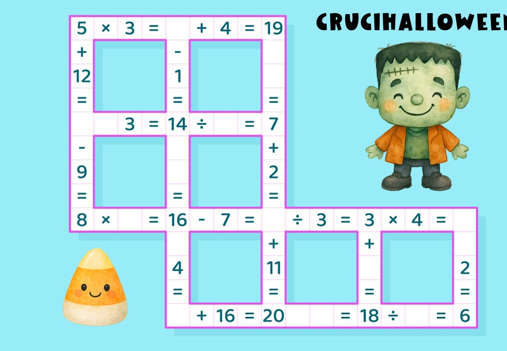 Hoy te traemos un recurso original y divertido para trabajar las matemáticas de una forma lúdica y con temática de Halloween. Se trata de CRUCIHALLOWEEN, un conjunto de crucigramas matemáticos que combinan el cálculo con el ingenio, ideales para repasar operaciones básicas de una manera entretenida y visual.